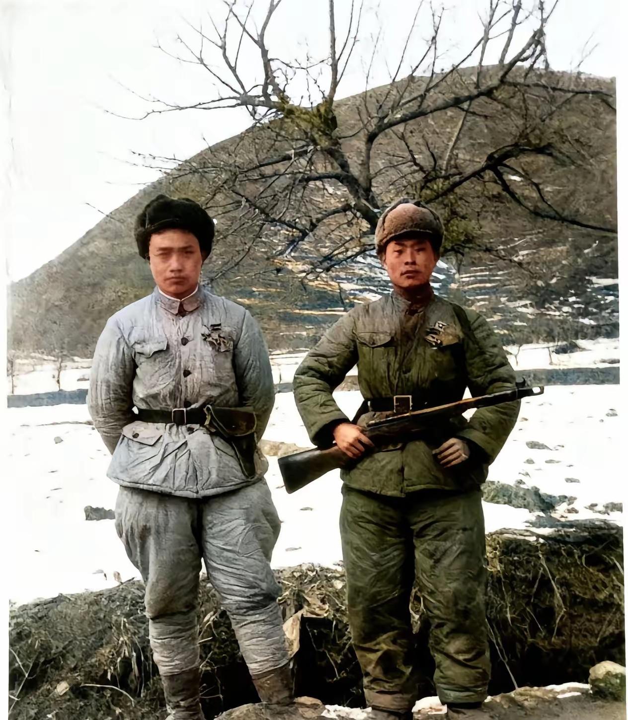 珍藏了七十年的一张老照片: 1953年冬朝鲜战场:正值壮年的父亲和警卫员裹着4斤棉的志愿军冬装,在残雪覆着山坳和表情严肃时刻准备战斗的警卫员合影。 照片背景里的山峦被炮火削去棱角。焦黑的树干倔强地刺破雪原,父亲的大衣肩头结着冰霜,领章上的将星却擦得锃亮。警卫员小陈的手指始终扣在扳机护圈外。 那身四斤棉的冬装根本挡不住零下四十度的严寒。许多战士在战壕里冻掉了脚趾甲,父亲的总攻命令总是选在凌晨最冷的时刻。他说美军裹着鸭绒被做梦时,正是我们撕开防线的良机。 小陈河南老家的未婚妻寄来七封信。他揣在怀里等到停战那天才拆开,发现姑娘早已嫁人。他把信纸撒进临津江,转身教会了全连战士包饺子。 父亲去年清明在墓园找到小陈的墓碑。他颤巍巍摆上三枚功勋章,都是小陈用身子滚雷换来的。九十岁的父亲挺直腰板敬礼,就像照片里那个准备冲锋的夜晚。 照片左下角隐约可见半截铅笔。那是父亲用来标注地图的,他总说铅笔头比子弹更重要。这场立国之战打出了七十年的和平,值! 麻烦看官老爷们右上角点击一下“关注”,既方便您进行讨论和分享,又能给您带来不一样的参与感,感谢您的支持!老志愿军 朝鲜战争先烈 志愿军老前辈 革命军人老照片 战场老照片 各位读者你们怎么看?欢迎在评论区讨论。