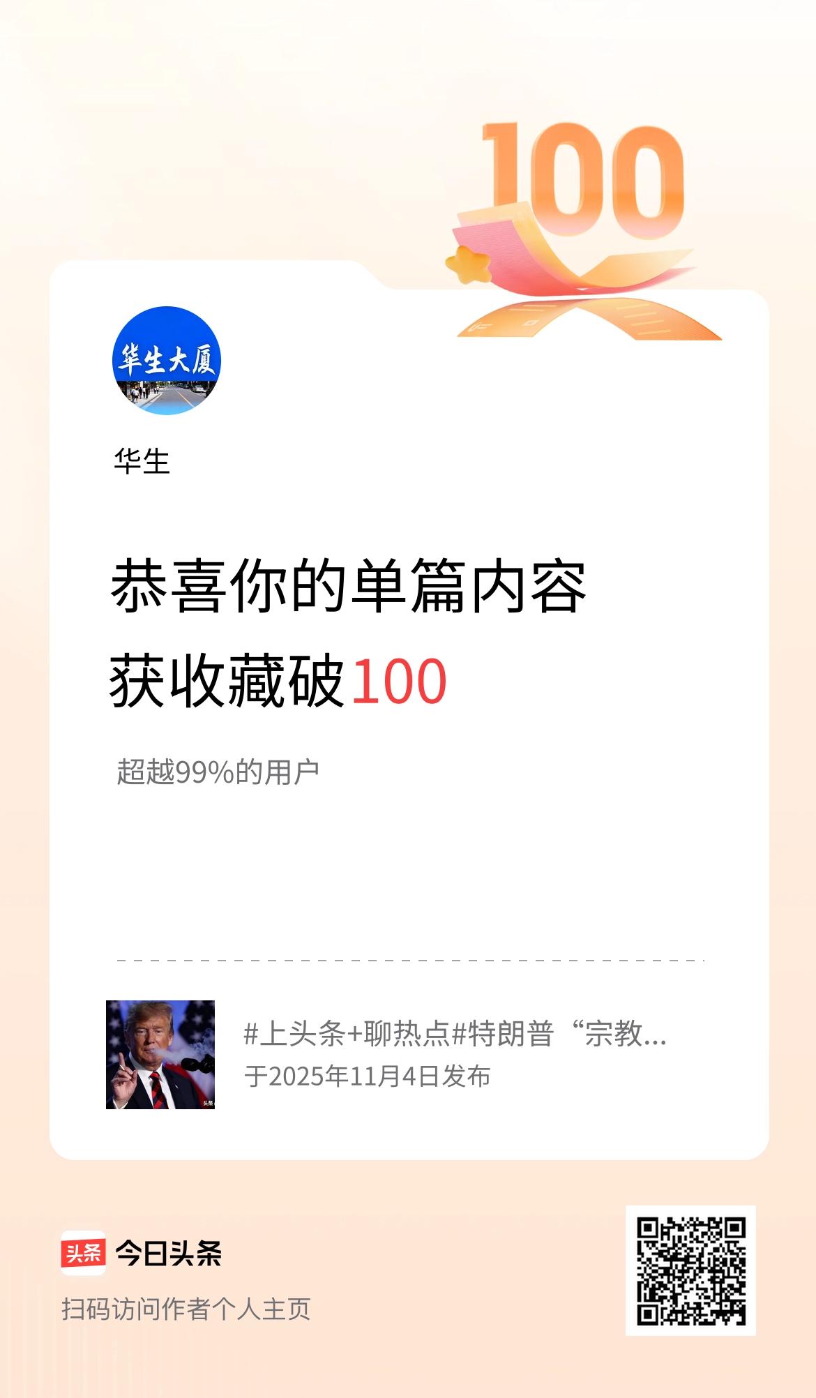 单篇内容获收藏量破100啦! 【致每一份温暖的同行】 当屏幕上的"100"闪耀成橙色缎带,心中翻涌的除了喜悦,更多是沉甸甸的感恩。 首先要深深感谢平台——您是桥梁,让微小的声音能被听见; 是沃土,让每一次用心的耕耘都有回响。 这片包容的天地,赋予内容生长的力量,也让我遇见了同频的灵魂。 更要感谢每一位读者朋友。 100次收藏,是100份信任的重量,是深夜阅读时点亮的星光,是评论区里温暖的鼓励与真诚的建议。 你们的驻足,让文字不再孤单;你们的期待,是我继续前行的最大动力。 还要致敬并肩的同行们。是思想的碰撞点燃灵感,是默默的坚持彼此照亮。这条路上,因你们的存在而更加丰盈。 100不是终点,而是新的起点。未来,愿继续以文字为桥,连接热爱,传递价值。感恩所有遇见,我们下一程再见! ——华生 2025年11月30日