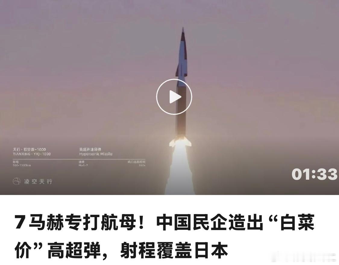 7马赫专打航母!中国民企造出“白菜价”高超弹,射程覆盖日本