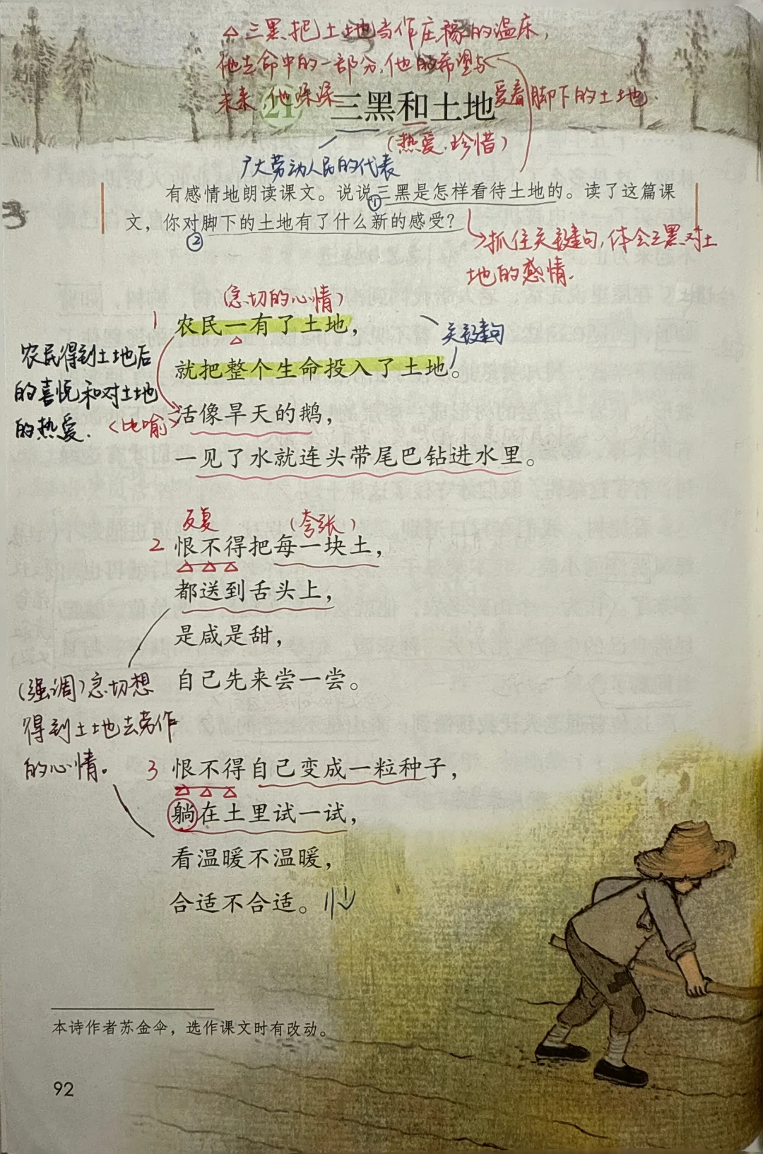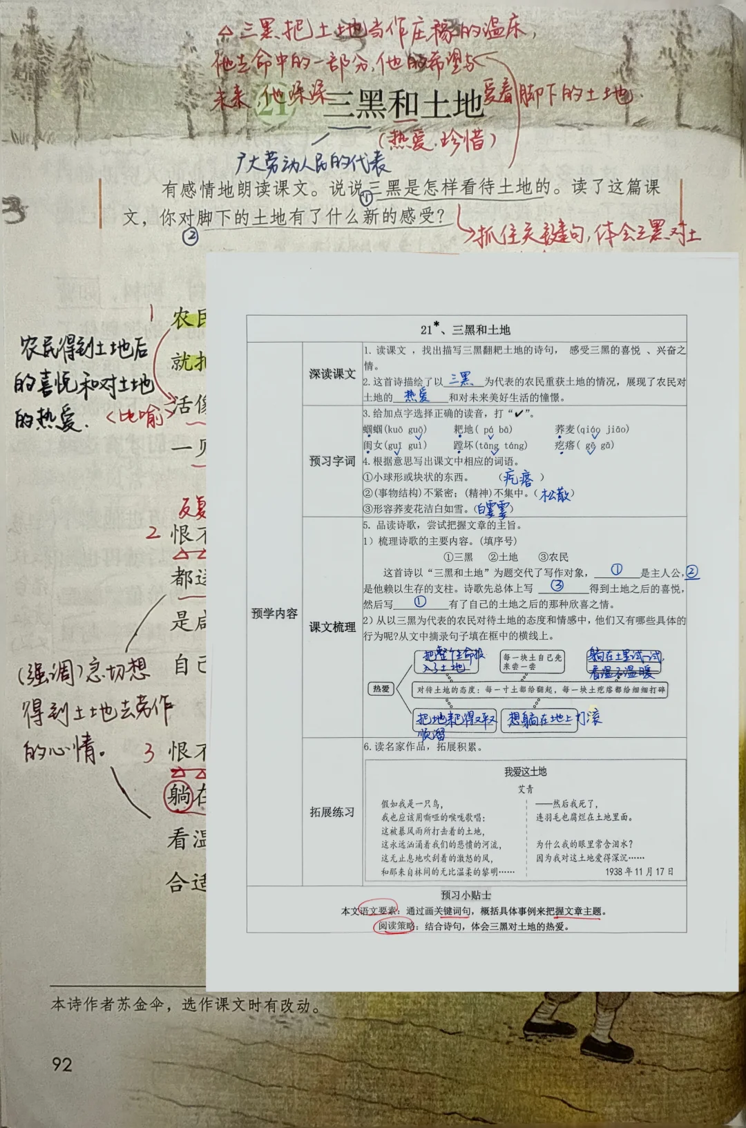 小学语文 六上语文三黑和土地 六上语文备课 教学思路 教学设计 分享预习单 备课笔记