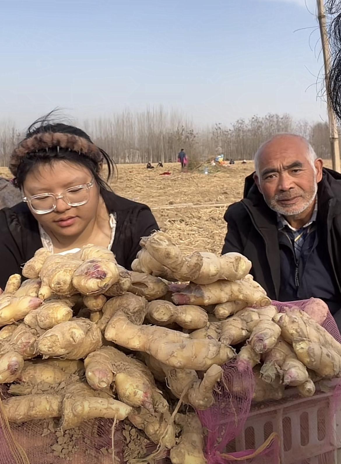 为了生活,都在用尽全力! 脑梗后的老四叔在镜头前,再也不能说,大家好,我是老四,今天搬货挣了600元,吃顿好的,他只坐在那里,说着:”多谢,多谢”,还双手合十感谢。 王月在直播间讲解姜,背景是农民正在地里挖姜,小旦在旁边协助直播。 新鲜的姜没有清洗,带点土直接发货,3斤9.9元,5斤15.9元,价格比我们这菜市便宜点,直播间卖了3千多单。 平时王月跑跑外卖,一天挣个几十、上百块钱,老四叔两口子都脑梗,感觉光靠王月跑外卖、拍视频,养家糊口挺困难。 很多粉丝也很支持他们直播,要是能选好品,应该能保证生活。