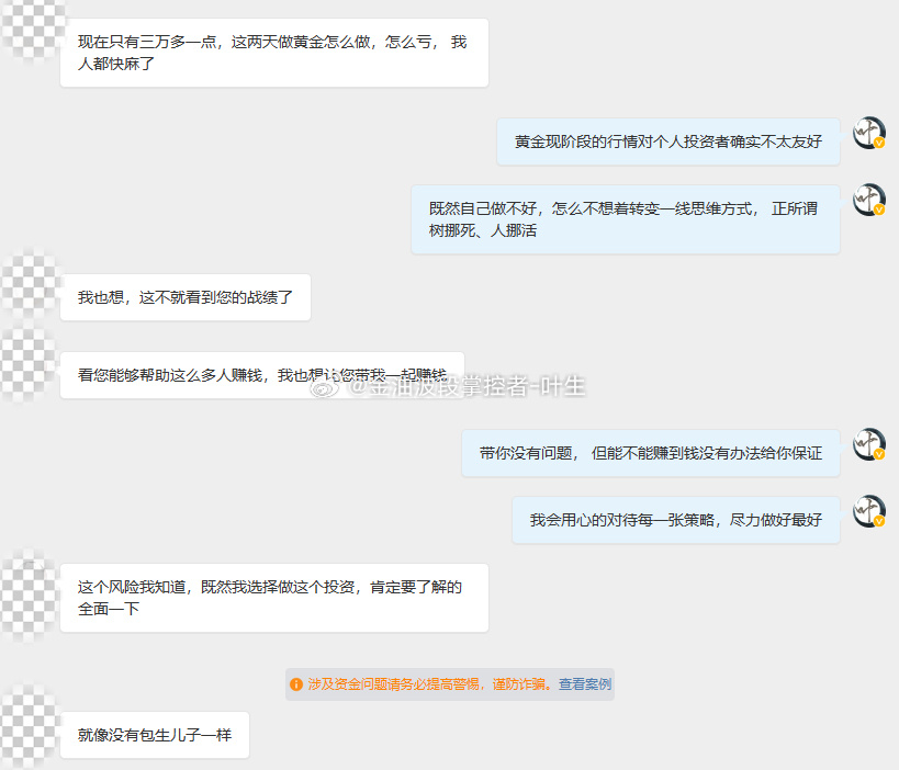 刚刚跟粉丝朋友聊天,其中他的一段经历我觉得有必要在博文当中跟提醒大家一下,随着时间的推移我们还有不到两个多月的时间,就迎来我们的新年春节。我知道在仅剩的时间内,许多投资者都想赚到丰厚的成果,来改善自己的生活品质,往往在这个时候一些宵小之辈会抓住你们想要丰厚成果的想法,从而用华丽的文字和巨额的收获引诱你,进入早已准备好的陷阱之中。对于不了解其中内情的你,可能觉得这次是天载难逢的机会,这次是你以小资金来撬动巨额收益的机会,当你还沉浸在能够获利巨额收益的喜悦中时,而背后的推手却在将你一步一步的推入亏损的深渊。叶生团队在此提醒大家,做投资要认准有资质且有实力的平台,至于那些连牌照都没有的平台,该断的就尽快断掉吧,以免到时候给自己整出来大麻烦来。我司合作推广的ATFX平台,别看我不经常把平台的名字在微博上公布,但你们可以通过你所知的任何一个查询渠道,来进行查询平台的资质和牌照。因为平台有给我底气,让我不惧任何人的猜疑,这也是为什么我不经常在博文中分享的原因。金价 黄金-叶生