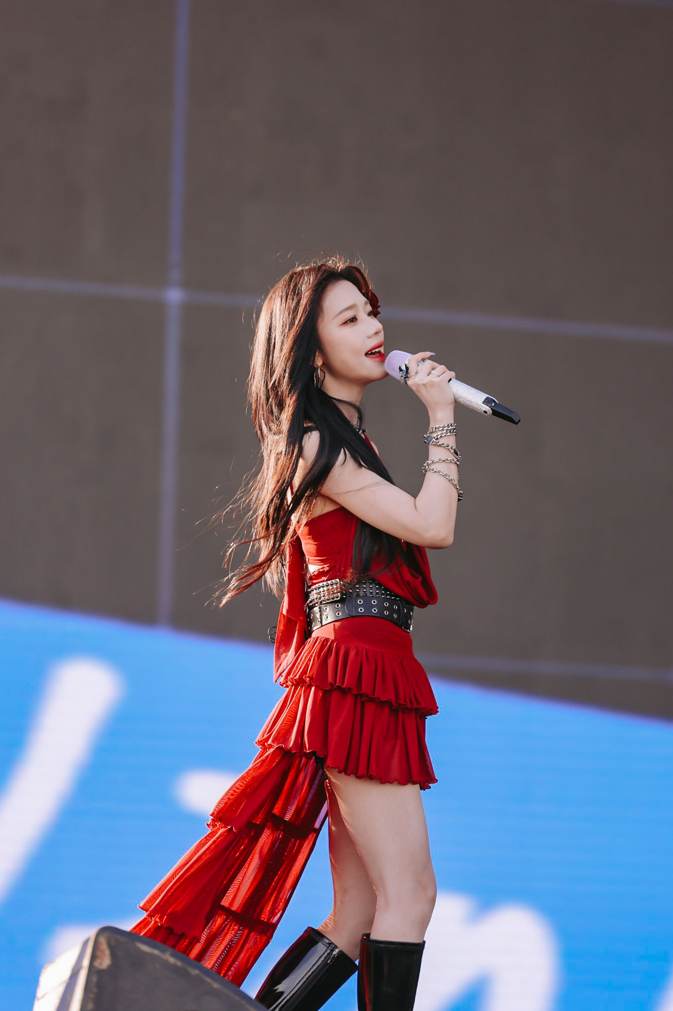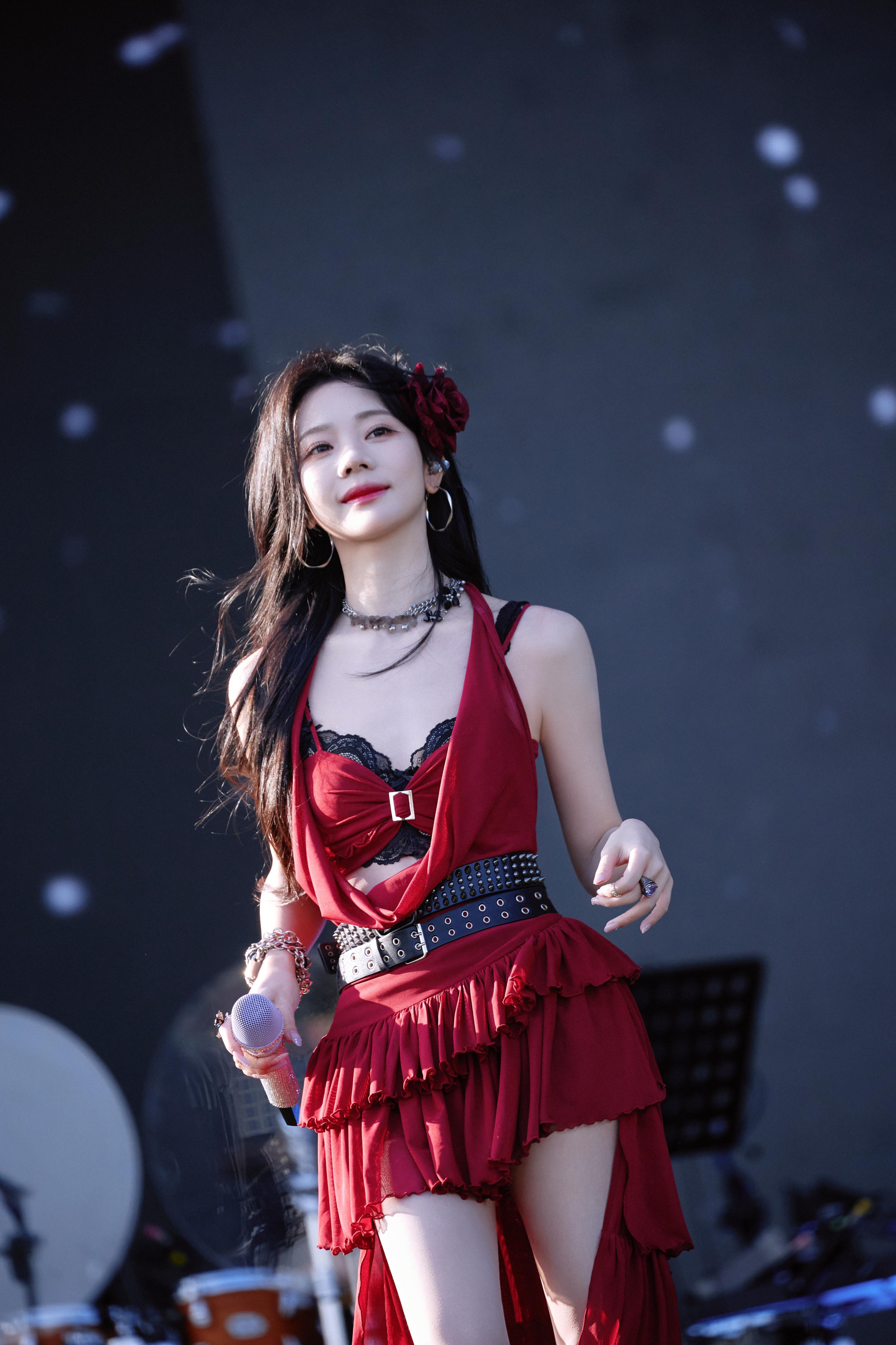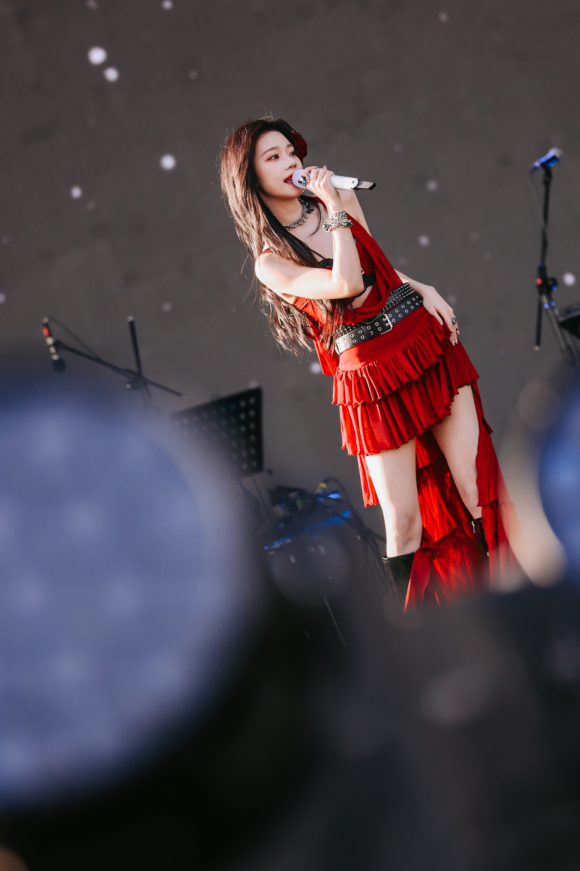 吴艳妮在成都穿着短裤大腿看起来很粗壮,表情自信又张扬