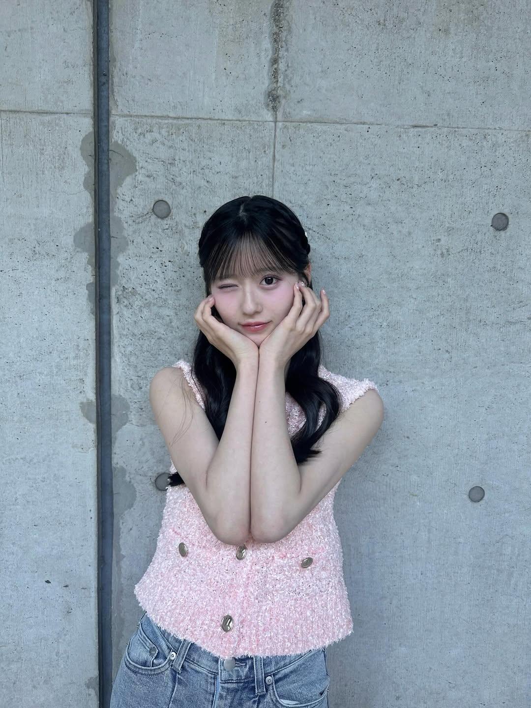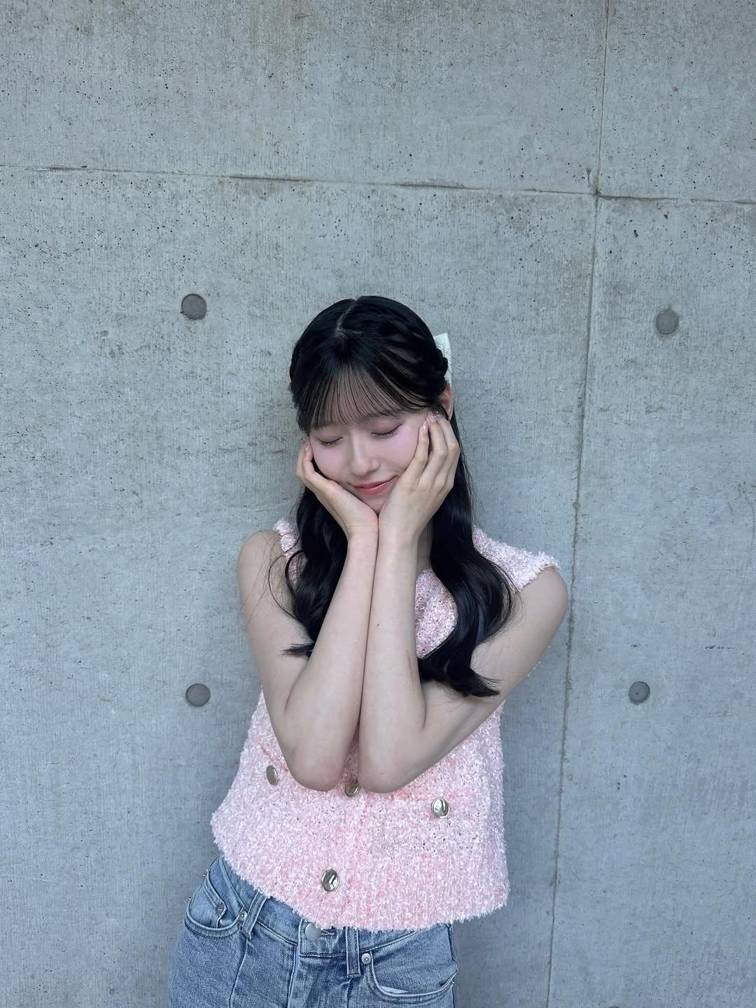 甜美少女风,粉色针织背心搭配牛仔裤,可爱又时尚!