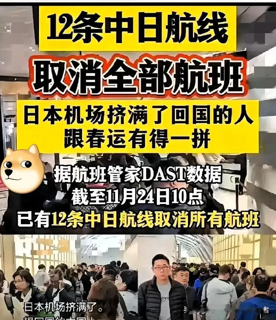 日本首相高市早苗 近几日对某问题发表了激烈言论, 结果被中国外交部狠批了一通。 没想到日本接下来就做了一件匪夷所思的事情——大量航班取消,准备赴日的游客遭遇了各种各样的麻烦。 游客在机场排队很困难。大量航班取消,改签的人很多,原本就很紧张的航班一时间乘客爆满,改签的人和排队的人增加,机场工作人员很少,旅客过安检和登机都要排很长时间的队。 赴日的团队旅游和散客很多,返程艰难。日本的经济舱票价暴涨。原本几千元的票价,一时间上万元了。 更离谱的是,11月中旬,日本对中国游客的安全提醒刚刚取消,就出现了这次事件,还有很多游客选择前往日本。 这一次的事件,不仅仅是日本旅游业受到了重创,依然前往日本的中国游客也会受到各种各样的麻烦和损失。但是,总体来说,是日本受损失更多。 而很多人说,这次事件让人想起了2020年年初日本疫情暴发时,那时候中国游客在日受到了各种各样的歧视和刁难,可惜的是,这一次的事件并没有给很多人敲响安全警钟,反而是让很多人对安全提醒的重要性不以为然。 航空公司也面临着巨大的压力,这样的情况或许会促使部分航空公司重新审视与日本之间的航线安排。 日本国内经济也可能受到连锁反应影响。由于游客消费减少,酒店、餐饮、零售等行业都可能面临收入下降的风险。 这次的事件不仅仅是旅游业的波动,更是对日本当局言论与实际行动不一致的一次提醒。 作为一个国家,必须谨慎处理国际关系,以免对自身经济造成不必要的损失。