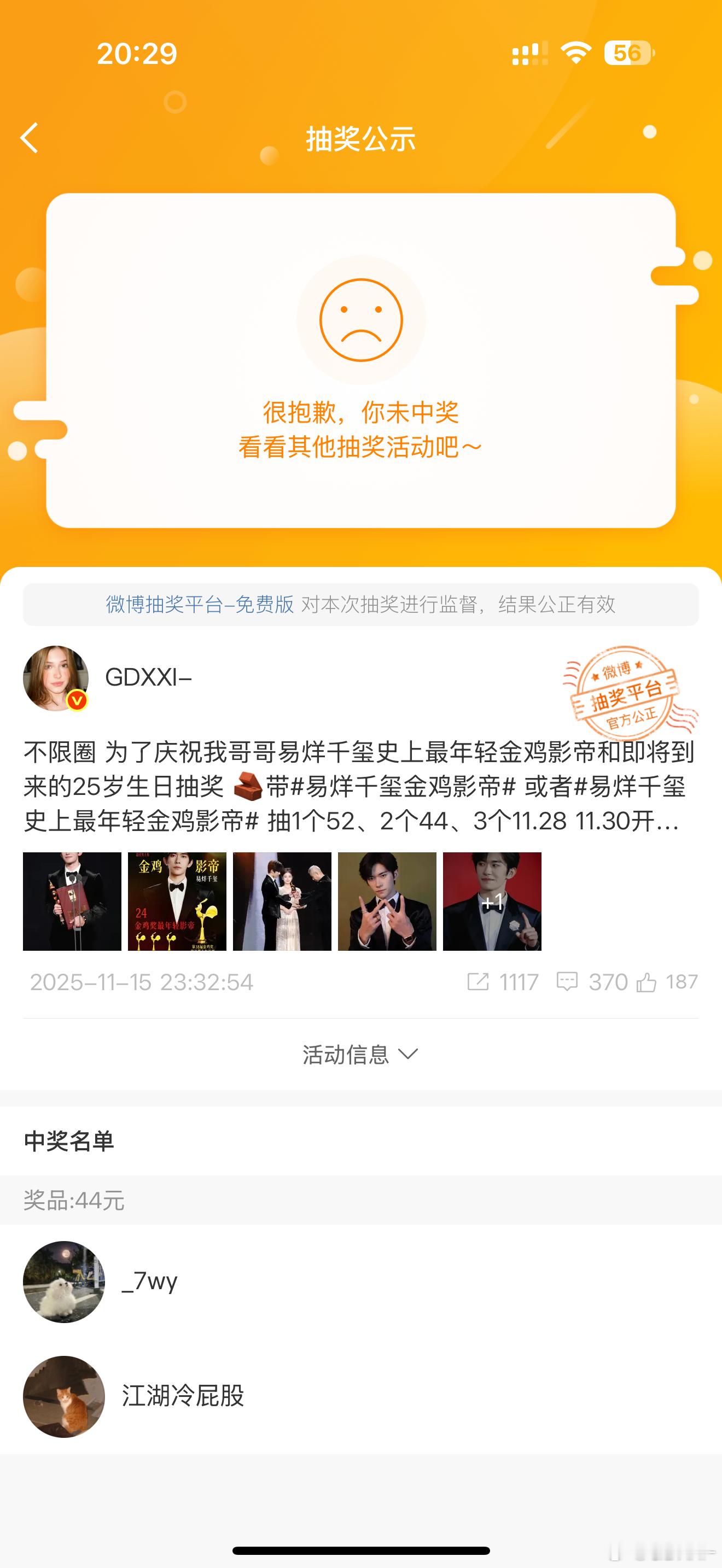 11.15抽奖结果出来了除了系统的两个44还有52的3个11.28私信找我