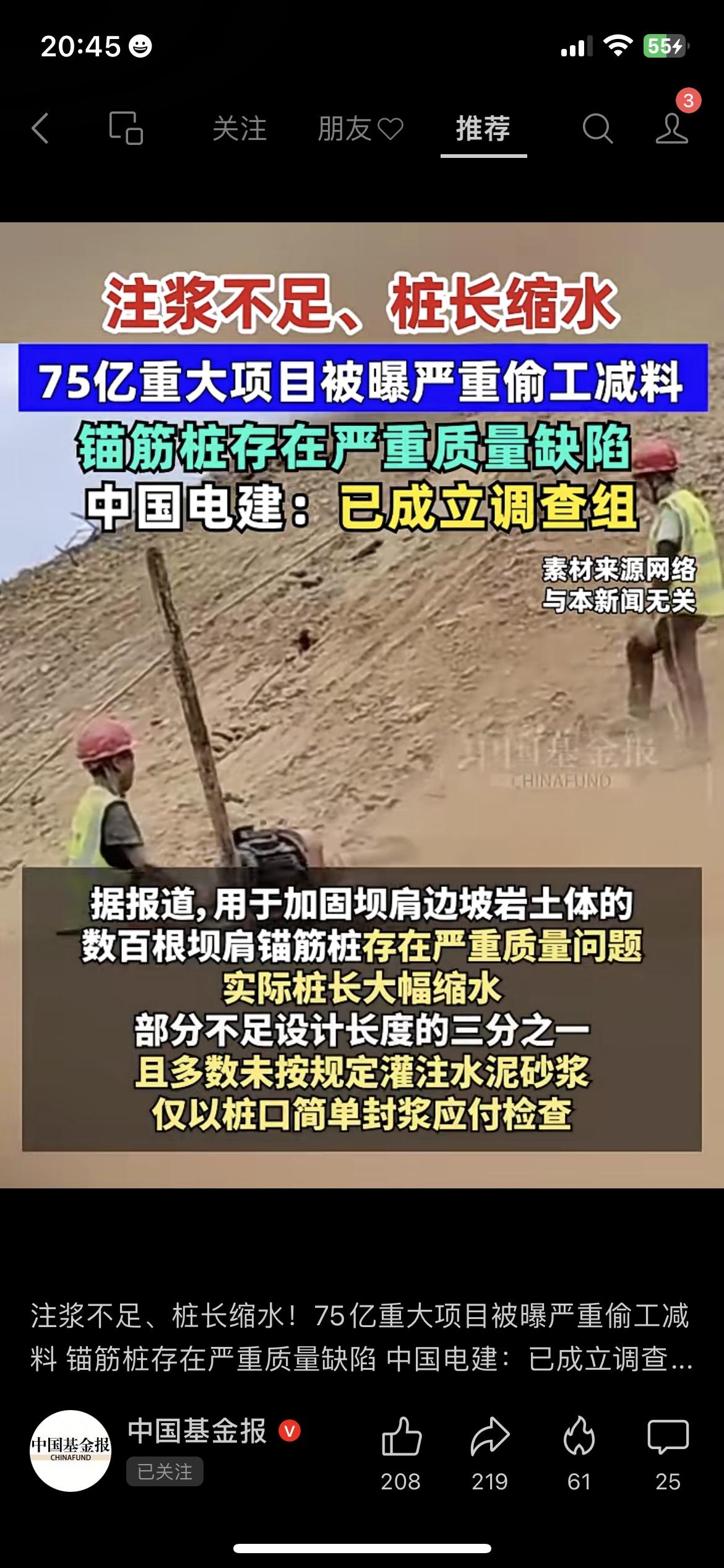 75亿项目偷工减料!桩长缩水三分之一,监理还收特殊招待? 家人们,据报道,一个75亿的重大项目被曝严重偷工减料,这事儿太离谱了! 用于加固边坡的锚筋桩,实际长度直接“缩水”——部分还不到设计长度的三分之一,而且多数没按规定注浆,就随便在桩口封了点浆应付检查… 更让人无语的是,负责监理的人员,还接受了施工方的宴请和娱乐安排… 现在中国电建已经成立调查组,后续会全面核查。这么大的项目搞出质量问题,确实得严查!你们觉得这事儿该咋处理? 75亿项目偷工减料 工程质量 中国电建调查工程质量问题 施工偷工减料