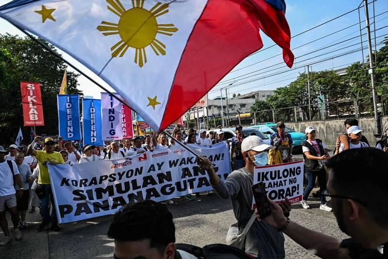【菲律宾数千民众聚集首都 抗议贪腐与“幽灵防洪工程”】海外新鲜事 菲律宾数千名民众今日(30日)聚集在首都马尼拉,要求政府就涉及数十亿美元的基础设施腐败丑闻追究责任。该丑闻已使数十名官员、议员及建筑公司负责人被指控贪污,引发社会强烈反弹。据法新社报道,菲律宾多个城镇近几个月因强台风带来的暴雨洪灾而饱受冲击,“幽灵防洪工程”(ghost flood-control projects)备受质疑,民众怒火不断升温。自从总统小马科斯(Ferdinand Marcos Jr.)7月在全国讲话中将此事列为重点后,多名官员陆续卷入这起不断扩大的腐败案。30日,大批民众沿马尼拉EDSA大道游行,高喊“马上把他们关进监狱!” EDSA大道曾是1986年“人民力量运动”的中心地带,这场运动最终推翻了小马科斯的父亲、前总统马科斯(Ferdinand Marcos Sr.)。在靠近总统府的马尼拉卢内塔(Luneta)公园,示威者举起标语,呼吁根除系统性腐败。20岁的变装艺人杰西·瓦纳卢维米(Jessie Wanaluvmi)表示,有人因为官员的贪污行为失去了生命。菲律宾全国教会理事会成员梅尔文·托克罗(Mervin Toquero)也对政府近日仅逮捕8名公共工程和公路部官员表示不满。他强调,如此规模的腐败绝不可能在高级官员不知情的情况下发生,“他们也必须承担责任”。由于大规模示威持续扩大,菲律宾警方派出超过1.7万名警力维持现场秩序。值得一提的是,今年9月曾发生一场反贪抗议演变为警方与蒙面示威者的冲突,最终导致逾200人被捕。图:菲律宾数千名民众今(30)日聚集于其首都马尼拉,要求就数十亿美元的基础设施丑闻追究责任。 (法新社)