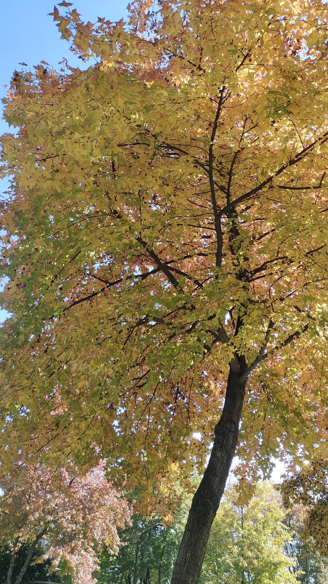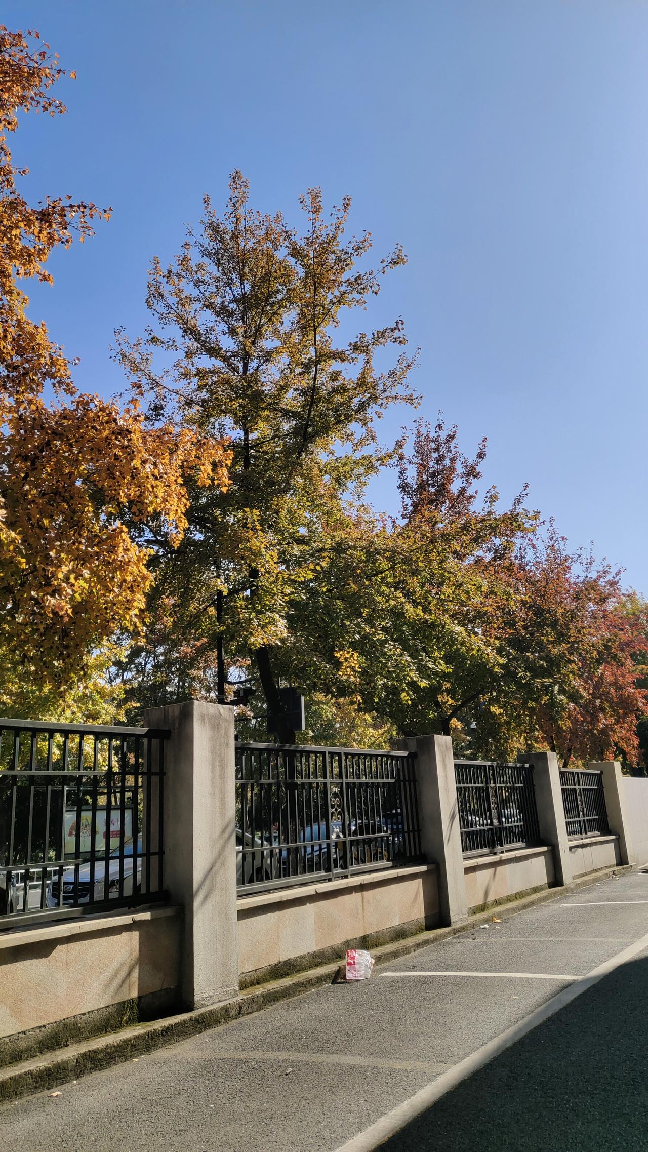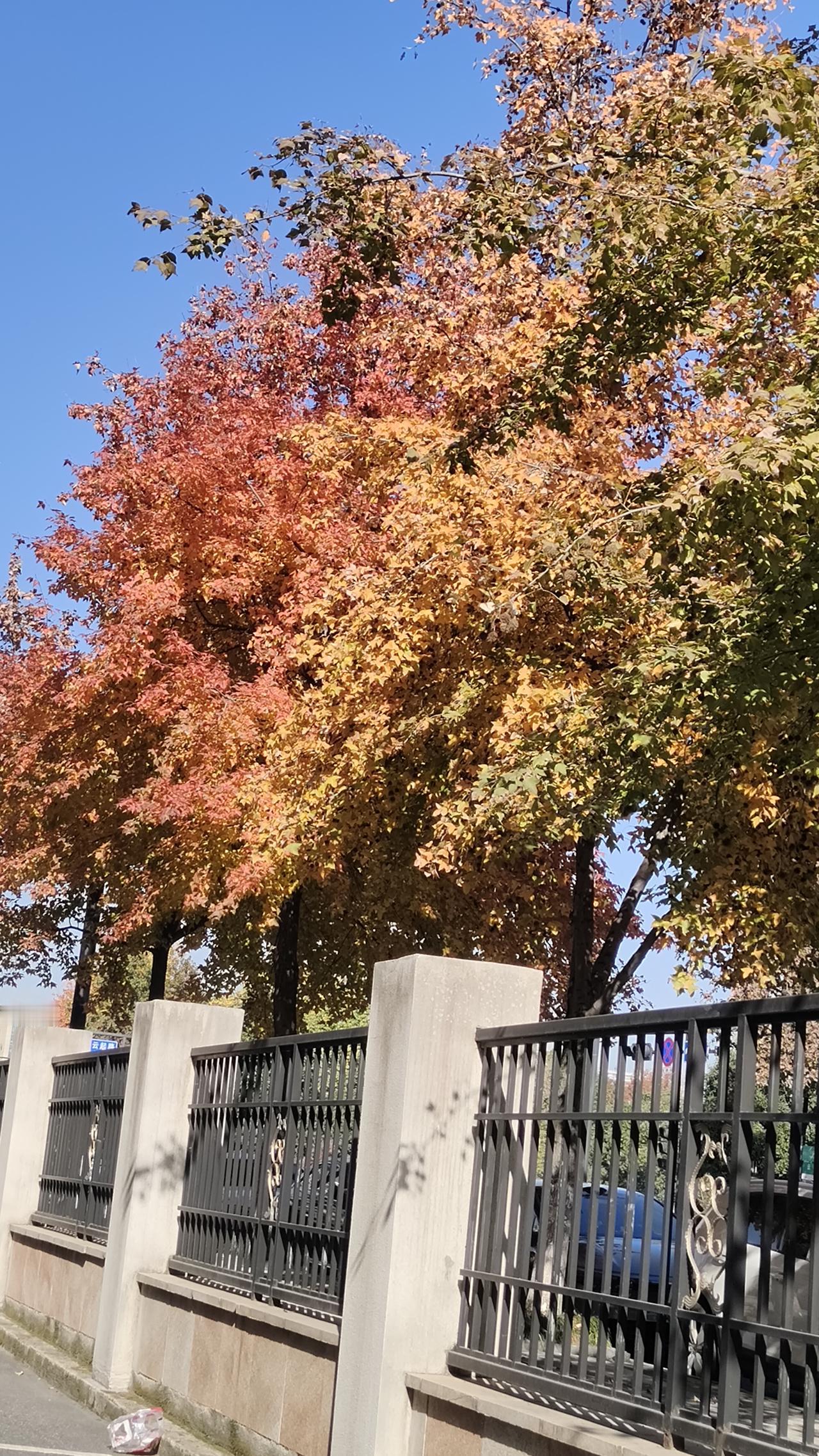 晒图笔记大赛蓝天缀白云,柳绿衬红枫。