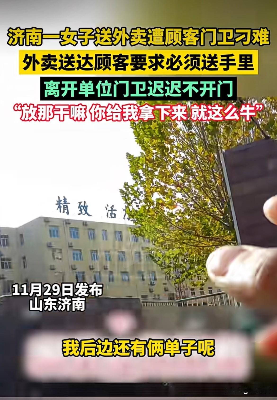 外卖到了顾客单位门口,门卫以外来车辆不能进为由拦住她。顾客却要求餐必须送到手里,还说超时跟他没关系。外卖员拎餐进单位想放围墙边。结果刚放下,门卫就关门把她关里面了,还大声质问。等顾客来了,门卫立马开门。顾客看到餐没在手里,还外卖员大吼让她拿过来。外卖员回了句“爱要不要”就走了,拐过弯还抹眼泪。这顾客和门卫也太过分了,把别人辛苦当理所当然
