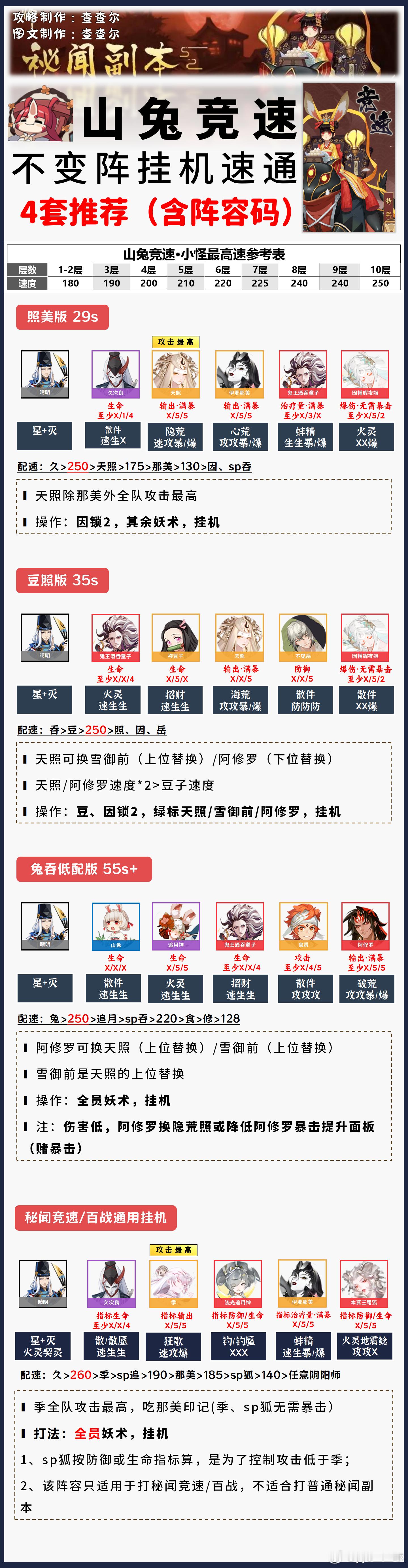阴阳师手游超话创作官acg优创官 【山兔竞速】1-10层不变阵挂机,4套+阵容码文字码:①久照美吞因|TA|593acf7408ea131eb44a1ad3e17cd5d1②吞豆照因岳|TA|c1dc7d668565a9119c2962272b0eabee③兔追吞食修|TA|b25c606b1e4235dee9741db335368c61④竞速通用|TA|b00136fc28fd3745a30f1b02a3de48c3游戏百科