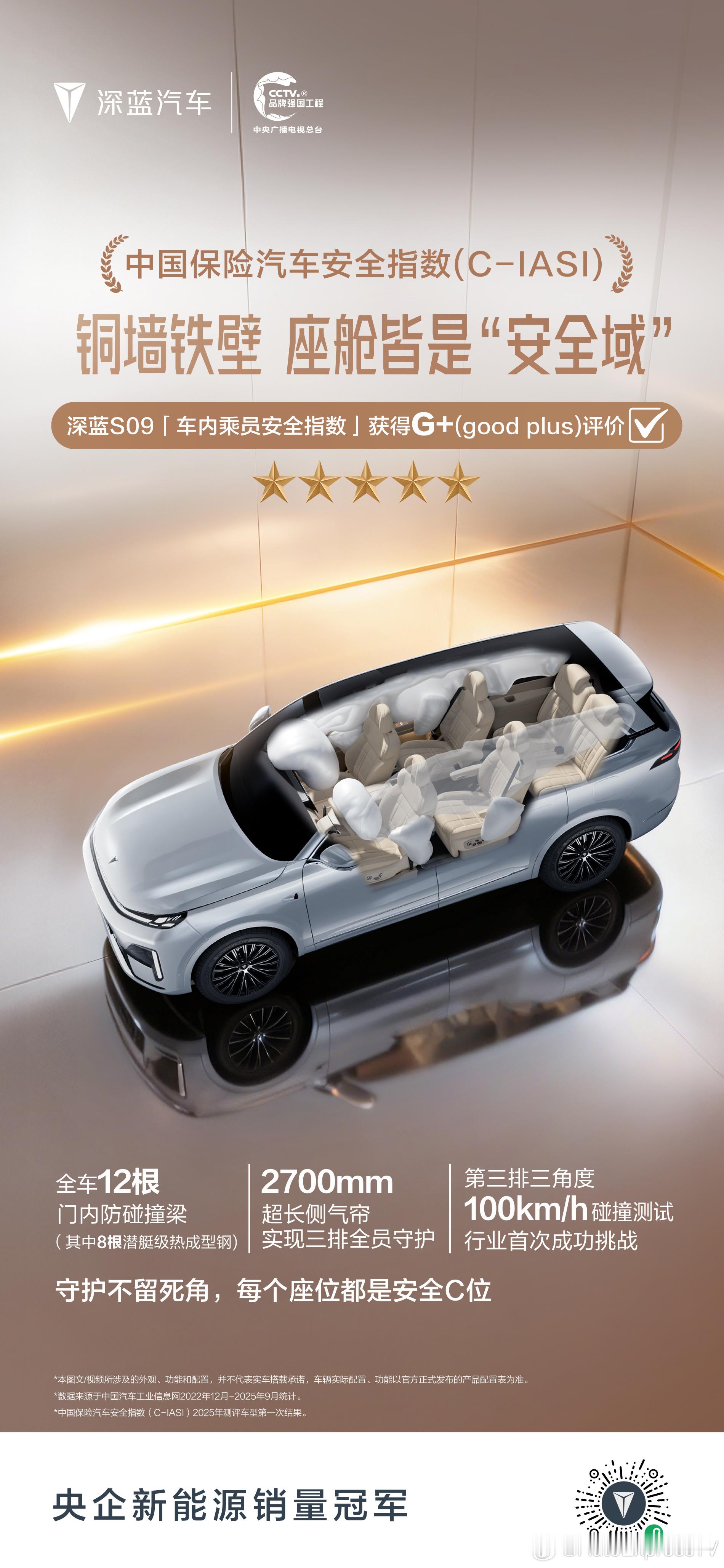 权威认证,安全新标C-IASI 测评车型首测结果出炉中保研权威测评:深蓝S09实力认证淬炼核心,铸就全域安全新标杆深蓝S09安全优等生深蓝汽车