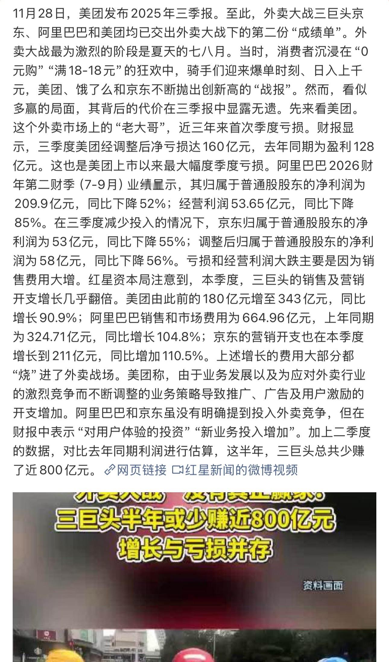 外卖大战6个月烧掉近800亿这种竞争希望不要停,商家、骑手、用户三赢,就是巨头企业少挣了点嘛…
