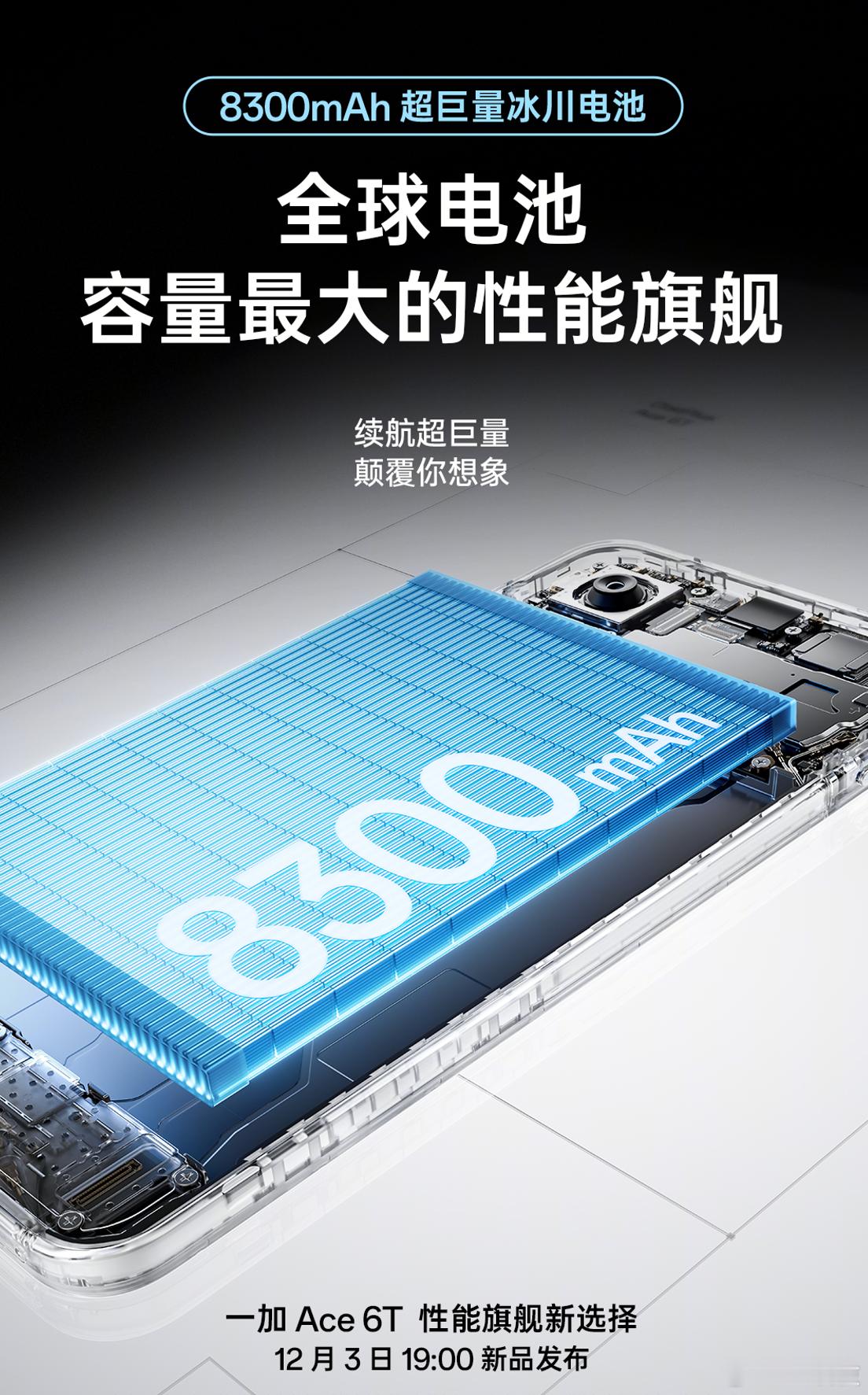 12月最猛的性能旗舰一加Ace6T来了,刚好填补12月到跨年的空档,之前我以为电池封顶8000mAh,没想到竟然是8300mAh+100W快充组合,续航持续补电还快。