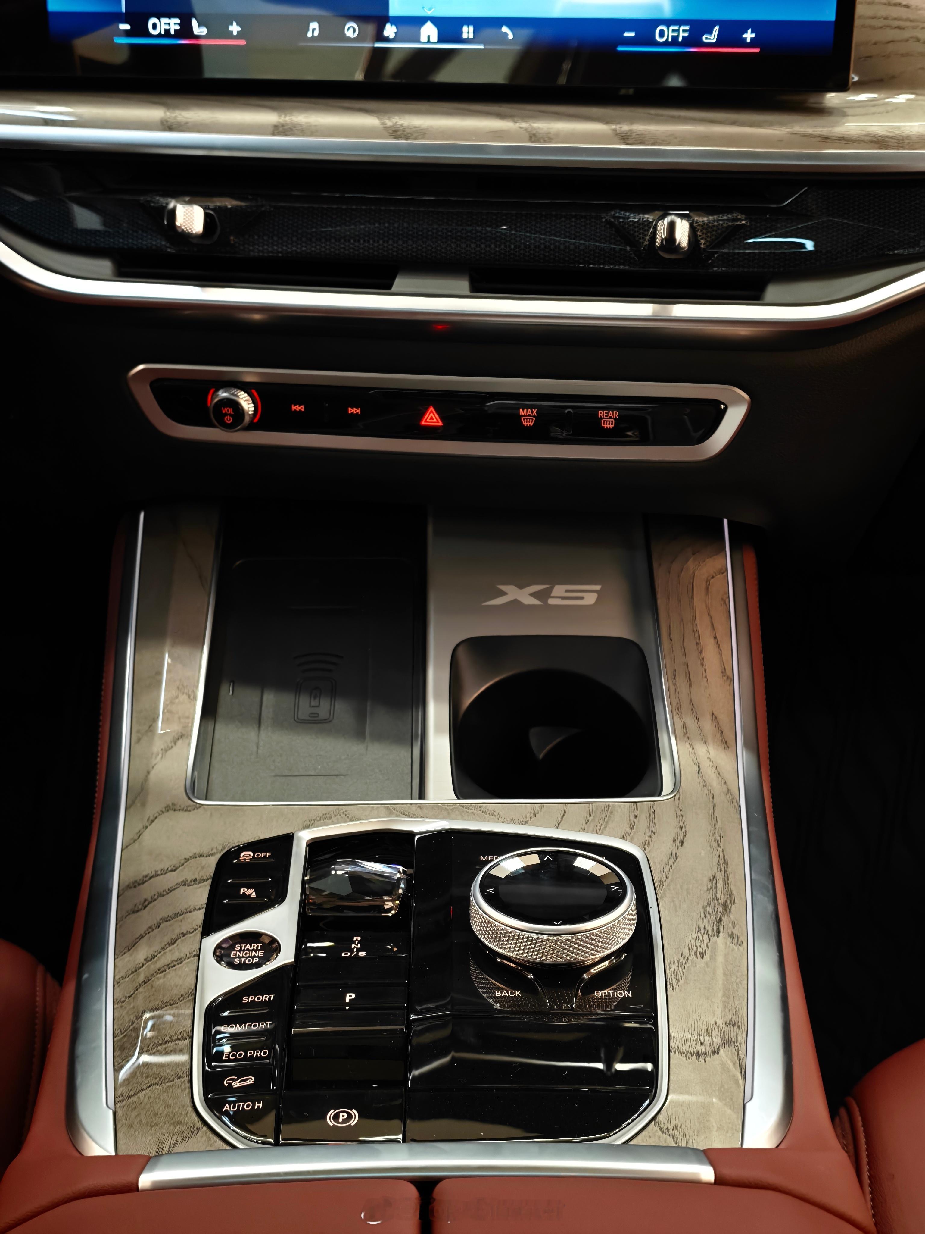 宝马X5中控区域,无线充电和水杯架,这单个水杯架真的难崩,买了两杯喝的如果放车门板上还容易歪/容易洒,这咋整你说?这是宝马费尽苦心打造的一重大升级,就为了让你能自己开车自己享受,副驾也别坐女朋友了,这才是真正的驾驶者之车啊!