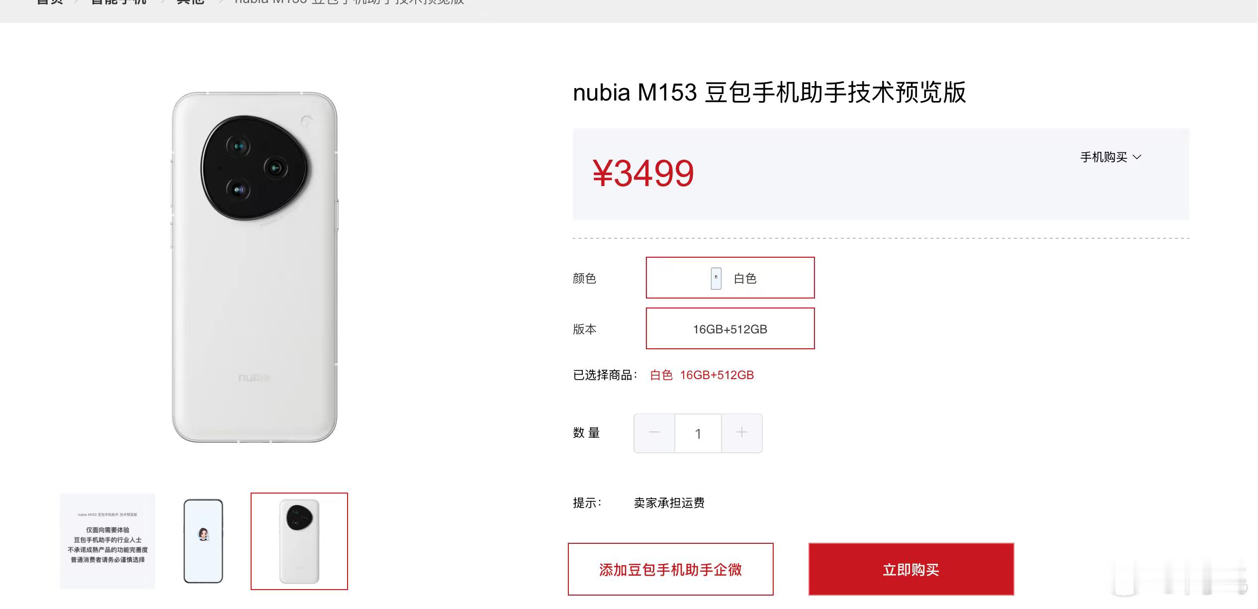字节和努比亚打造的全球首款原生AI手机上架了,名字就叫“豆包手机助手技术预览版”,仅面向需要体验的行业人士,建议普通消费者谨慎选择
