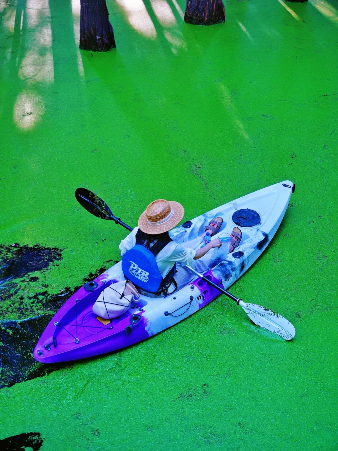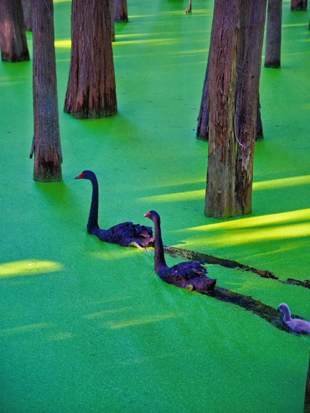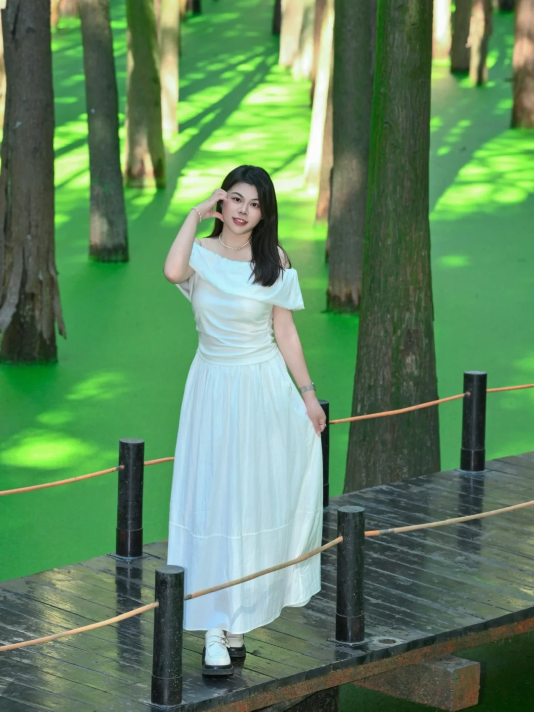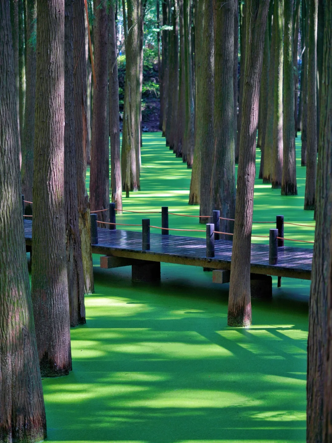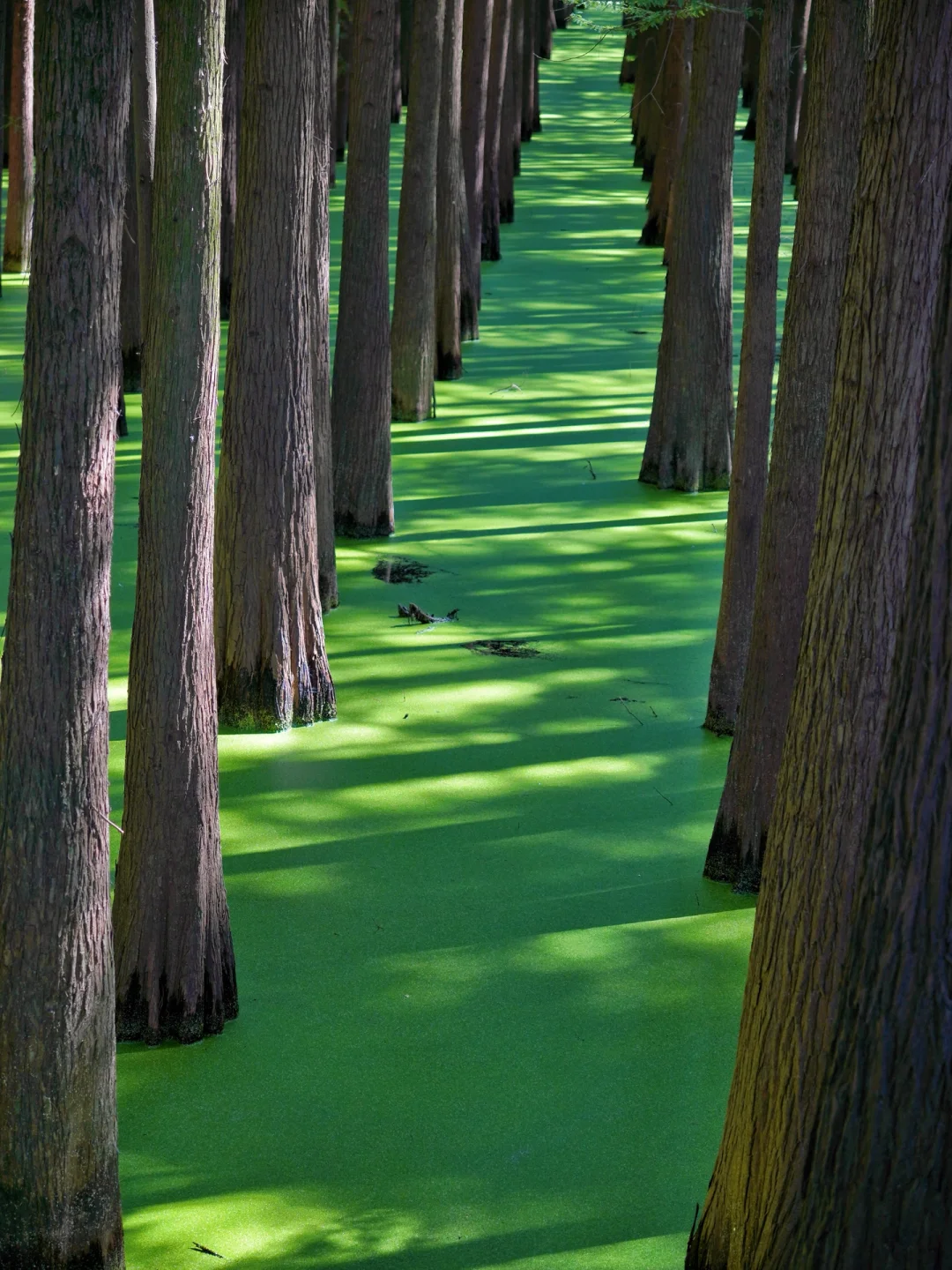 杭州青山湖水上森林,简直美到失语!🍃 抹茶绿的水面像是大自然打翻的颜料盘🎨 漫步森林,大口吸氧,吸收满满的绿色能量🔋 🌳青山湖水上森林游玩攻略快码住: 🎫门票:40r/人(1.2m以下儿童免费) 杭州文旅卡💰29.9r/人,需提前两小时购买 (限杭州本地或社保缴纳在杭州的) 🈺开放时间:8:00-17:00(16:30停止入园) 🚇交通:16号线【青山湖站】D口 🚌地铁口有1元景区接驳车,如果没有,步行至水上森林入口10分钟左右 📍自驾:🧭导航“青山湖水上森林停车场”(青山湖D口旁),💰5r/h 🚣景区皮划艇:单人💰120r/h,双人💰220r/h 👗穿搭建议:穿黑色或白色等纯色系,露肤度较高的衣服,可以搭配帽子、墨镜、首饰等,拍照更出片。 📷网红机位在景区东区“亲水平台”,有水边栈道可以坐着或站着拍照,很出片!⚠️那边有很多摄影师,可现场约拍,大多20元/张,包修。 ⚠️Tips: 1、尽量工作日10点前或者周末9点前入园,错开高 峰; 2、拍照建议早上或下午2点后去,光线柔和更出片; 3、森林水域蚊虫较多,做好驱蚊防蚊; 4、水边拍照和玩皮划艇要注意安全; 5、景区有黑天鹅🦢、野鸭子🦆、小鹿🦌,随缘碰到; 6、景区物价不算贵且统一,农夫山泉4元/瓶。