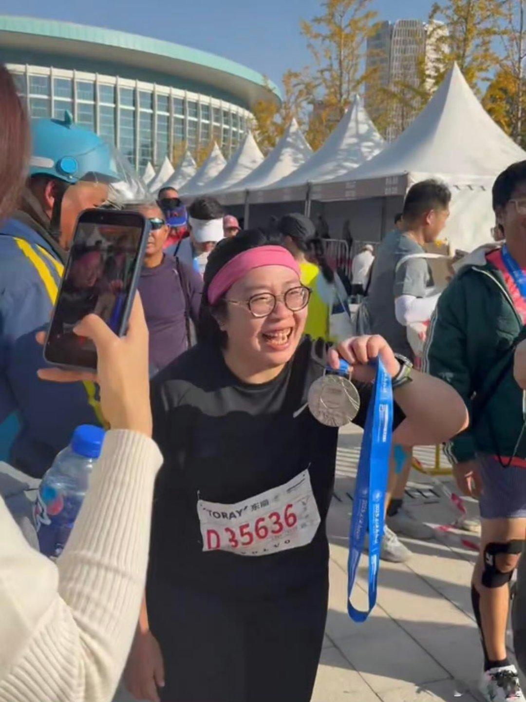 颜如晶完成全马42.195公里见证重生!颜如晶上海马拉松完赛,60斤减重+47分钟成绩提升,用脚步书写最热血的破圈故事。