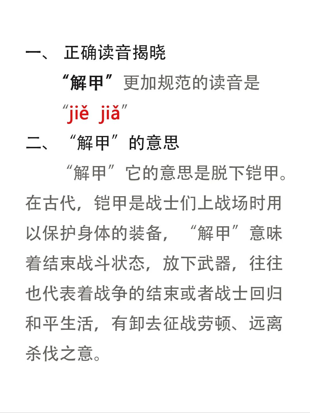 第一眼看到“解甲”,感觉读“xiè jiǎ”。