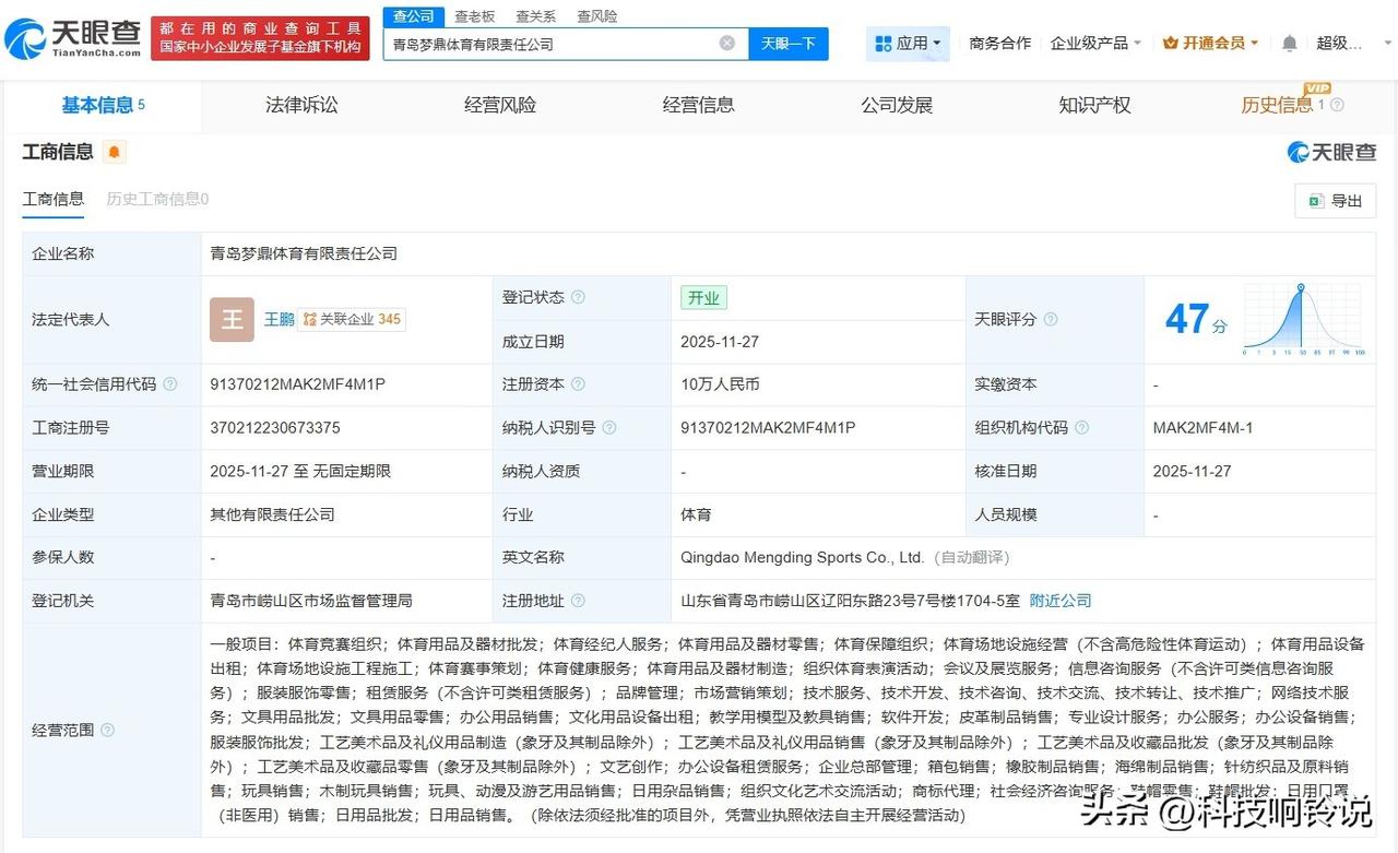 【陈梦父母投资成立体育公司陈梦父母新公司叫梦鼎体育】 天眼查工商信息显示,近日