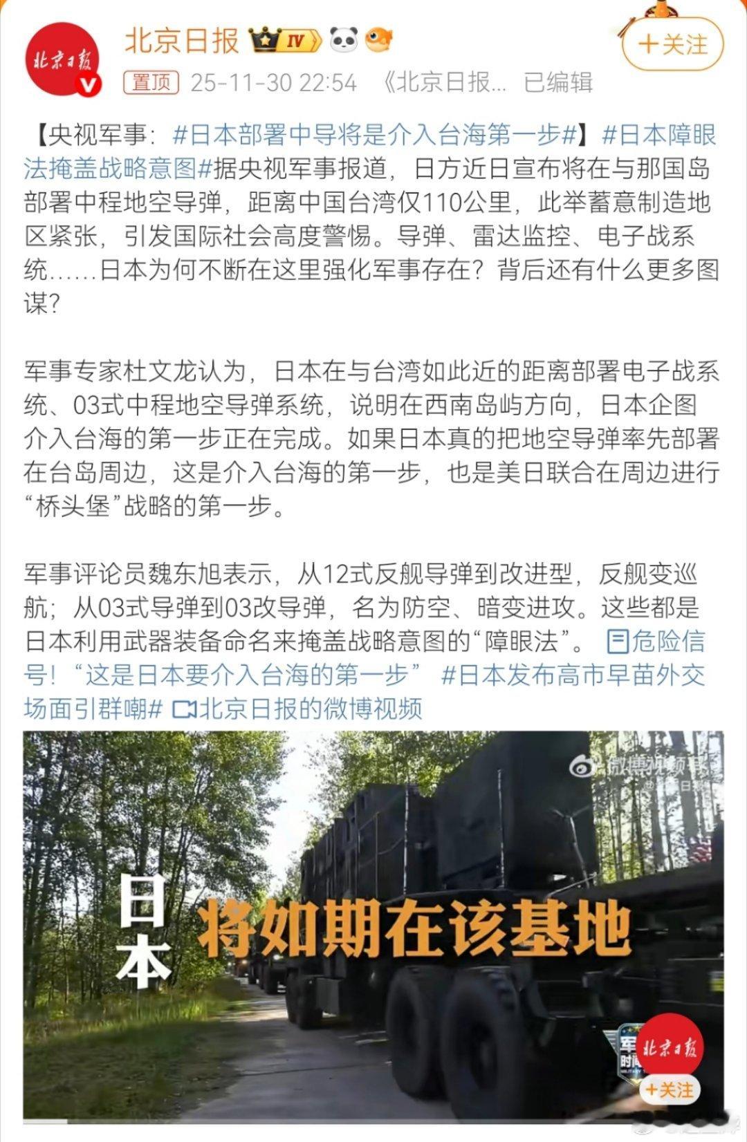 除了舆论认知、外交、经济、军事领域,最近在佛教和道教等玄学领域当中,中日之间的斗法也已经日渐白热化。别问本博是怎么知道的,就等着看新闻吧… 日本部署中导将是介入台海第一步
