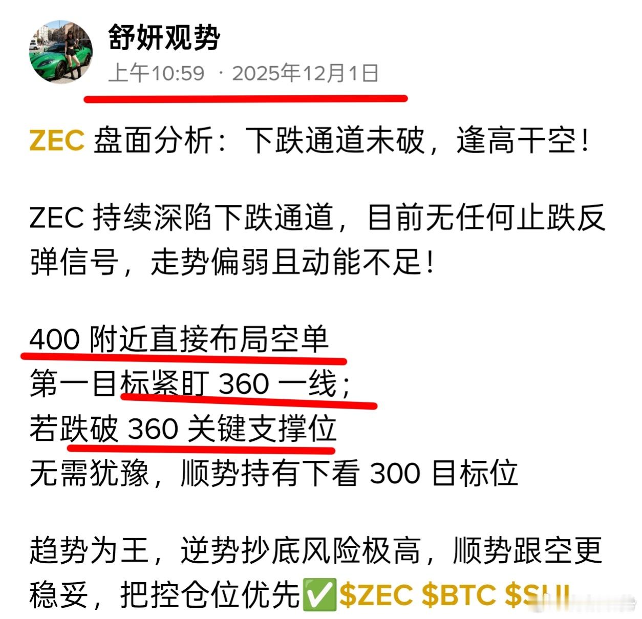 ZEC 目标达成,早上跟上的朋友,又能吃上瀑布了,400附近进空的朋友,最低来到351,49点空间能给你带来多少收益!!你自己看看,还跟不跟上节奏??!