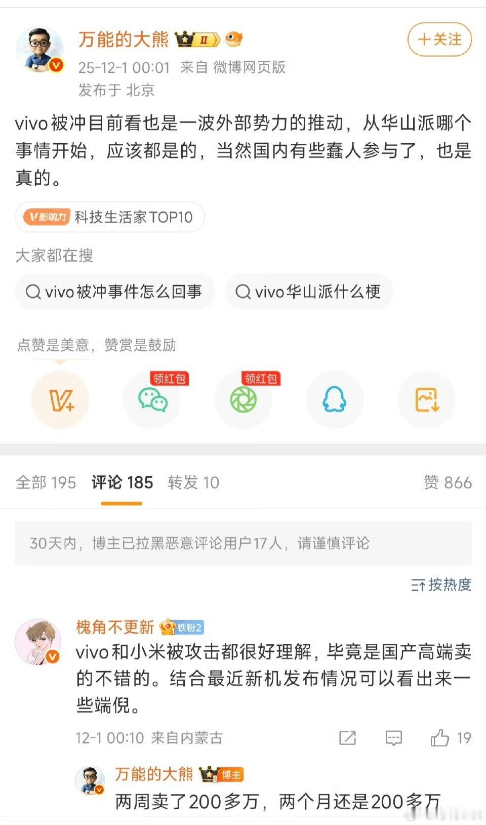 上次vivo站小米还是包装盒事件顺嘴多提一句,我之前一直在说,人驾车祸关车企屁事,为什么爆出来一两起急到破防?大概是因为整天给小米车祸安排热搜,每次人为车祸都车企全责,弄多了自己出车祸,消费者第一时间觉得并不是驾驶员不行,而是车企不行。所以解释都不解释了,直接把事实上发生过的自家车祸定性为自己被黑公关黑惨了看来大家心里都是门清,小米遭的事情也要充分考虑一下会不会烧到自己身上