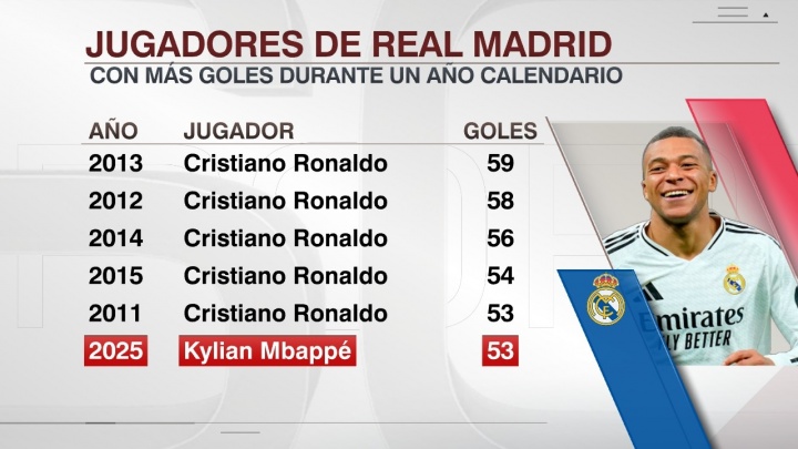 姆巴佩本场比赛点射破门,今年姆巴佩已经代表皇马攻入了53球。追平了2011年的C罗。
