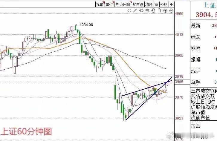 午评: A股早盘放量全线上涨,一力降十会?接下来还能看多吗?上午收盘的三大指数全线上涨,截止上午收盘,上证指数涨0.42%,深证成指涨0.95%,创业板指涨0.9%。截止上午收盘,三市的成交额1.24万亿,比上一个交易日巨幅增量2,514亿。截止上午收盘,三市上涨的家数3672家,下跌的家数1592家。从今天上午市场的走势来看,果然符合莎莎的预判,市场再次走出了小幅上涨的行情。而且从上证指数的角度来看,上证指数今天早盘突破了3895点的关键压力点之后。目前正面临又一个关键点位。如果接下来突破这一关键点位的话,市场还会向上加速。这个关键点位从60分钟级别来看,刚好处在3906点附近。如果接下来指数向上有效突破3906点,那么不排除指数还会进一步向上加速。——大家请看图一,上证指数60分钟k线图。从60分钟级别图中,我们可以看到,有两条蓝色的线条,在当前点位构成了交叉压力。那么接下来问题的重点是什么?问题的重点是今天上涨之后,接下来市场还能继续上涨吗?莎莎认为继续往上看问题不大。接下来上证指数可能要上涨到预期当中的下降通道上轨压力位。大家请看图二——上证指数日线图。在下图当中,我画了一个非常清晰的下降通道,当然这个下降通道是提前预设的,带有很强的前瞻性,不过莎莎认为如果接下来指数真的涨到了下降通道,上轨的压力位这个位置应该会有强压力。从图二当中我们可以看到,这个强压力的点位,有可能会出现在比3926点还要略微高一点的位置。可以说目前因为整体市场量价齐升的良好格局,我认为市场上方虽然有多重压力,但是奈何目前市场的成交量非常的活跃,已经达到了“一力降十会,大力出奇迹”的效果。所以上方虽然有重重压力,但是我们不妨把目光看得更远一点,把目标位提得更高一。中午收盘就简单的和大的说到这里,市场的走势连续符合预判,莎莎还是感到非常开心的。而且关注莎莎的朋友都知道,从4034点最高点,一直调整到3816点的最低点,我让大家都做了全部的规避。而从3816点以来的反弹,到目前为止,又基本上完全把握到了。作为一个纯技术派的老手,确实感到非常的开心。兄弟朋友点赞,评论➕关注就是对莎莎这个纯技术派的最大支持。