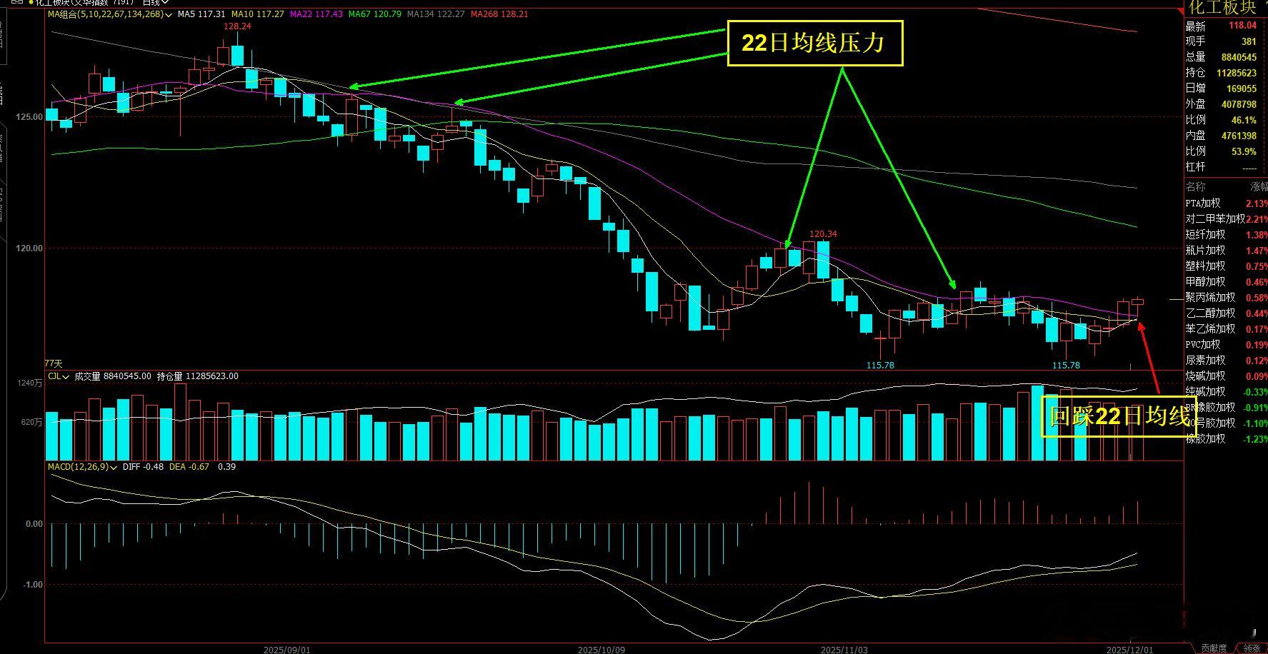 化工板块,今日回踩22日均线后,形成继续上涨。今天走势符合22日均线的突破原理!