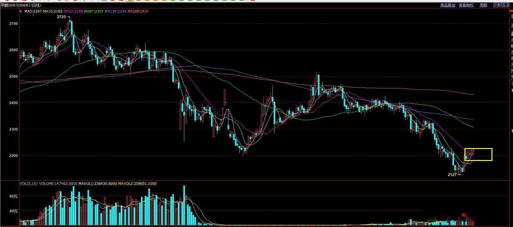 甲醇的走势形态,短线去通过横盘震荡来做回调修复!
