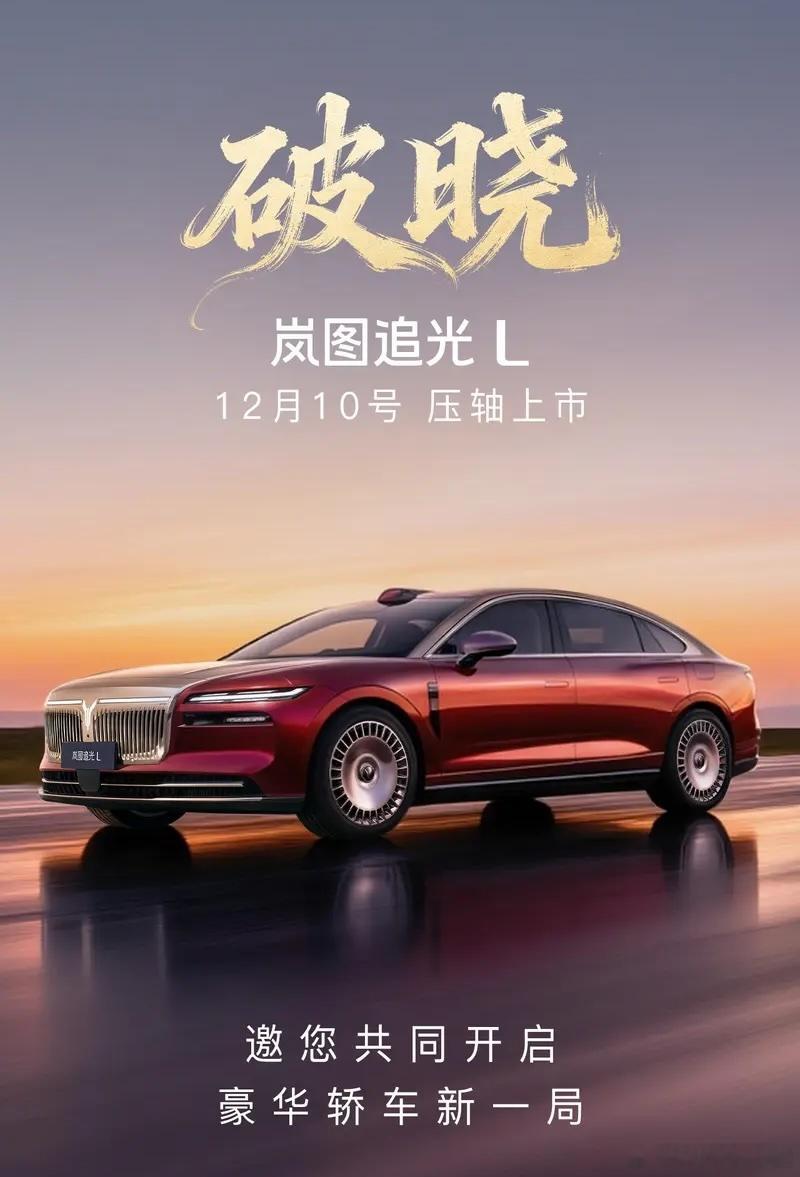 岚图汽车今日官宣 ,追光L本月10日上市。12月10日岚图追光L压轴上市