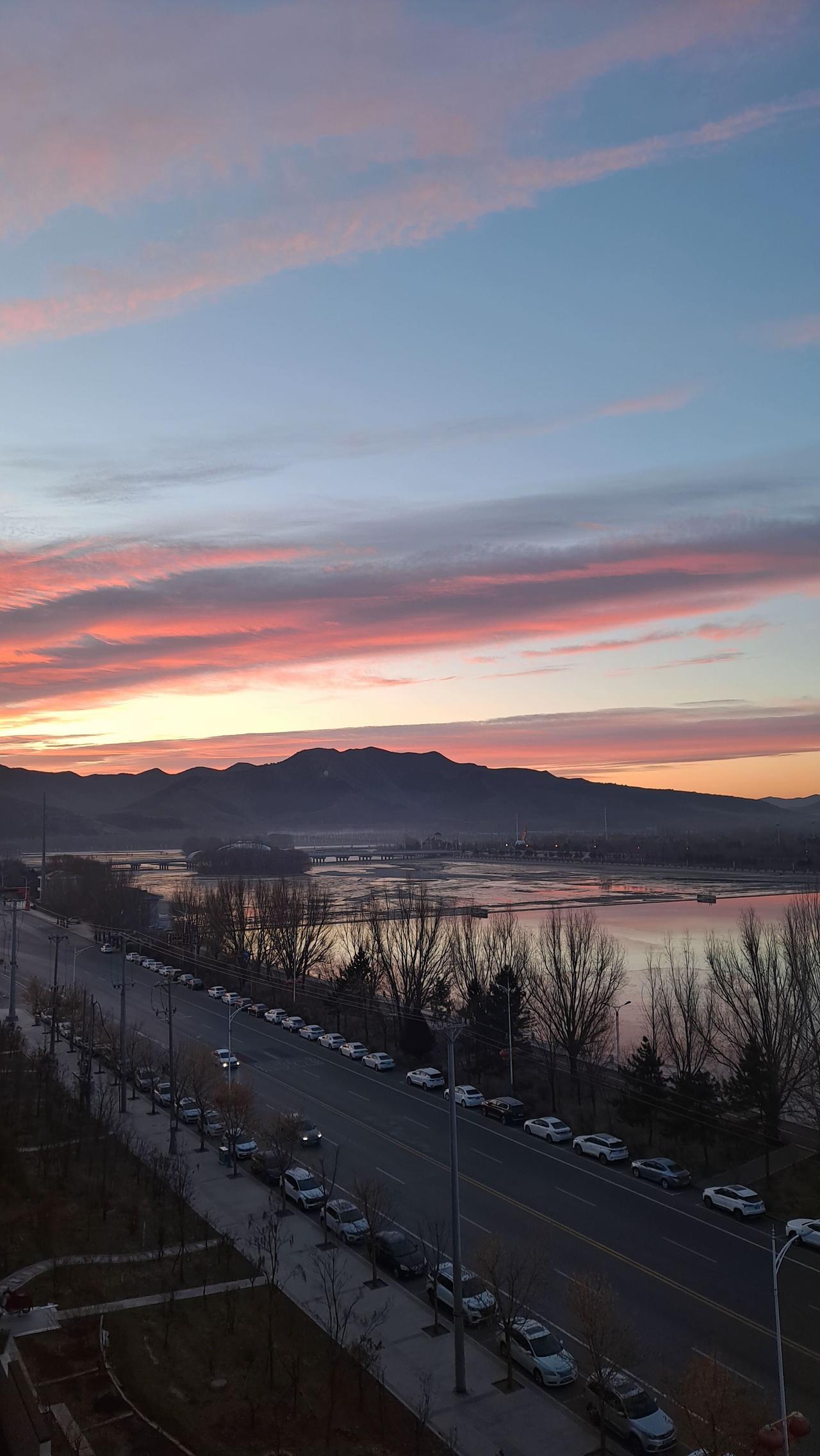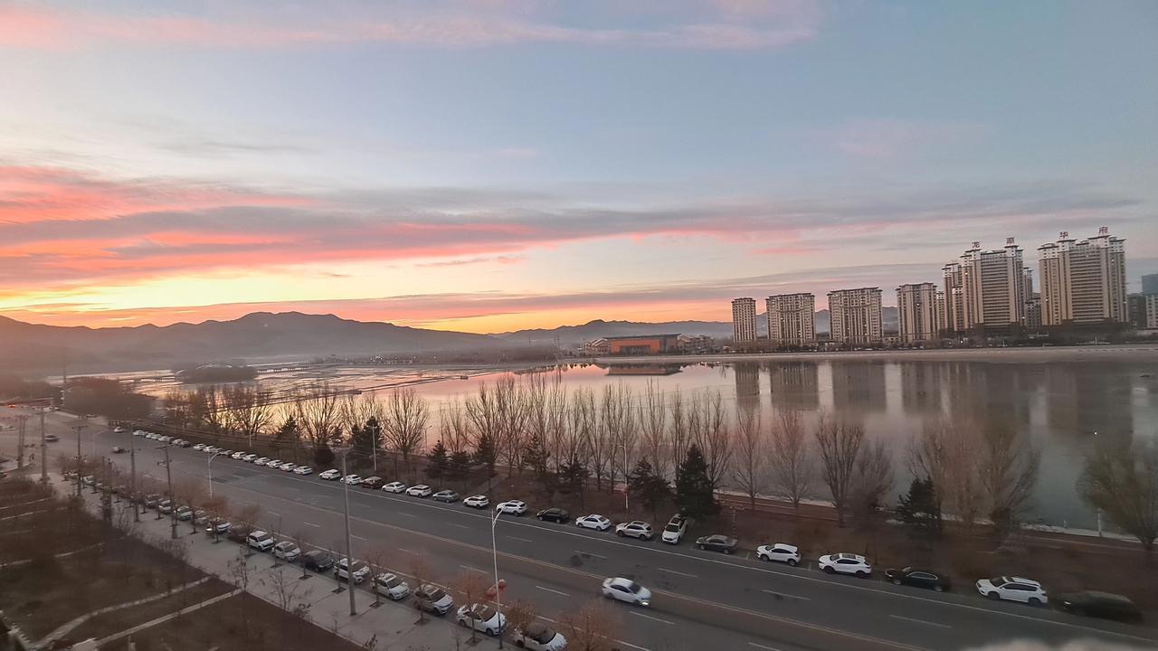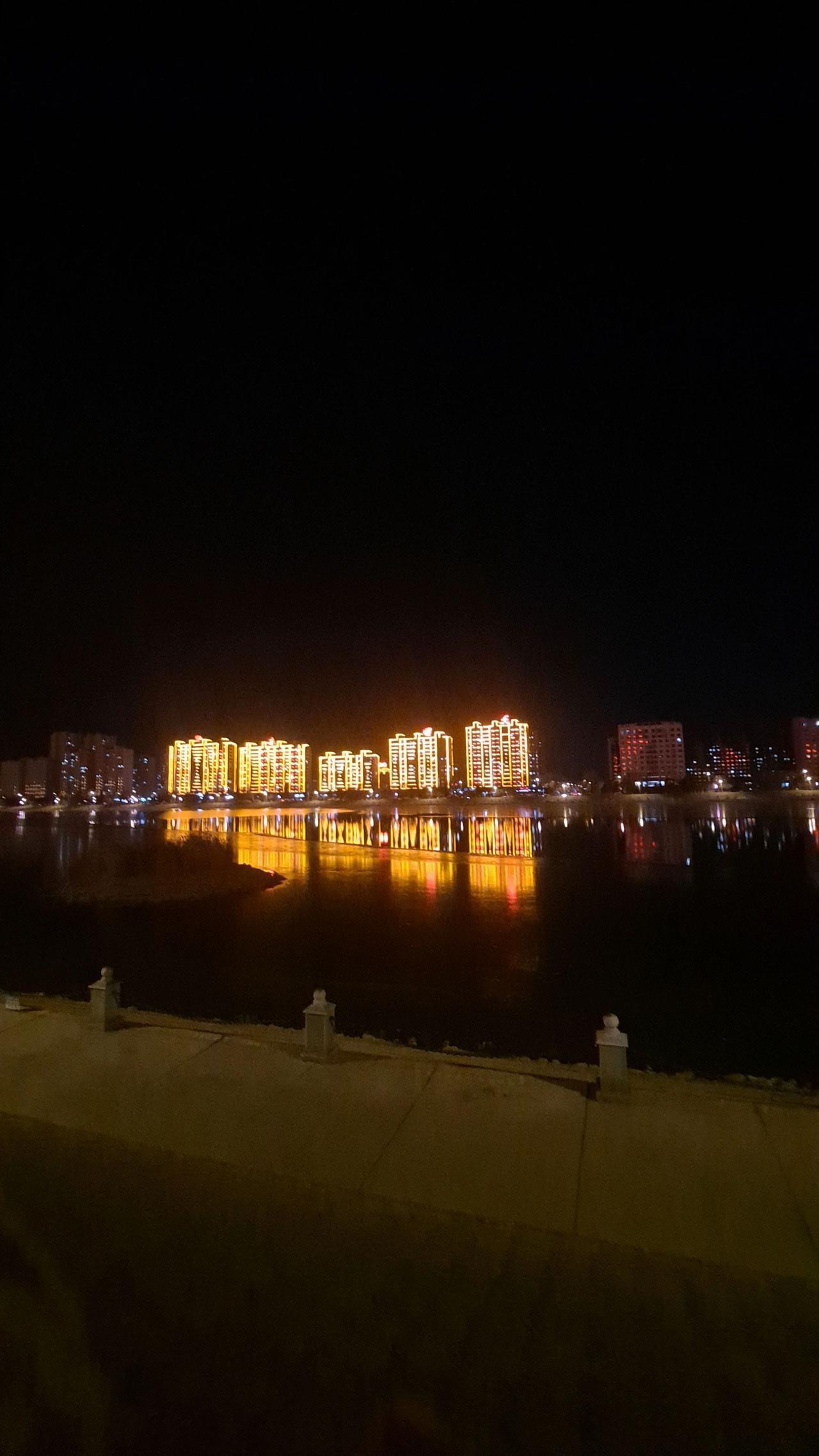 朝阳喀左下雪了,入冬后头一场雪,晚间拍摄喀左龙源湖景区。