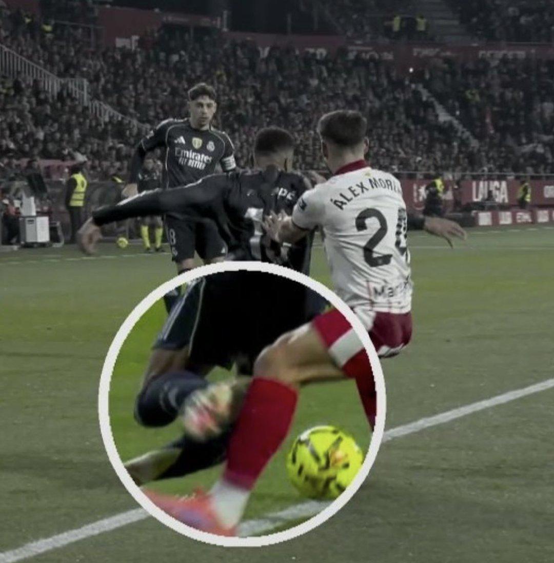 【马卡报】吉罗纳打入1-0进球前,姆巴佩曾示意对方犯规。吉罗纳队员先是推搡姆巴佩,随后又用膝盖绊倒姆巴佩,接触发生在禁区线上,皇马本应获得一个点球。比赛尾声,吉罗纳队员的右脚踢到了罗德里戈的右腿,导致罗德里戈倒地,裁判仍然没有表示。德布尔戈斯吹响终场哨后,罗德里戈再次坚持这一诉求。罗德里戈、米利唐、贝林厄姆等球员围向主裁判理论,吕迪格被卡雷拉斯拉住以防事态进一步升级(此前吕迪格曾在国王杯决赛中与德布尔戈斯发生冲突,还因此被禁赛 6 场 )。皇马TV也严厉指责裁判:“主裁在场上可能没看清,但 VAR 没有提醒他回看画面,这一点毫无辩解余地。禁区内的身体接触就该判点球。”