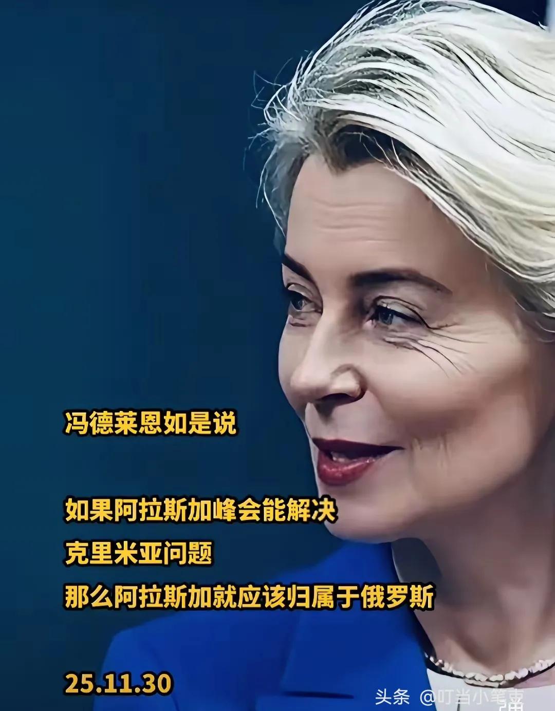 冯德莱恩竟敢拿阿拉斯加与克里米亚作对比。 这事要是让特朗普知道,估计他会破囗大骂,因为此前冯德莱恩与拜登两人关系不错的缘故,特朗普就很不爽,他再次上台后也不怎么待见对方。 阿拉斯加是1867年美国花了720万美元从沙俄手里买下来,克里米亚的归属问题是俄乌冲突爆发的原因之一,如今冯德莱恩却将阿拉斯加与克里米亚相提并论,或许在特朗普看来,这冯德莱恩简直是在找茬,他不恼火才怪。 原本特朗普调停俄乌和平谈判,就没把欧洲考虑在内,现在冯德莱恩又来挑事,他对欧洲就更加不屑一顾了。