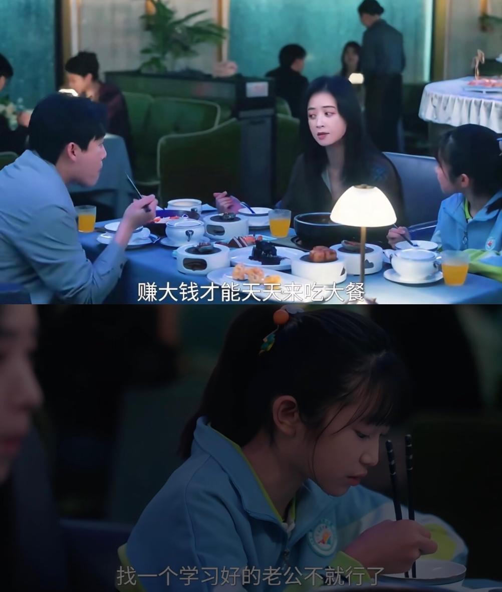 蒋欣的演技真的没啥表演痕迹, 太自然了完全被代入, 出来吃个饭也得敲打下孩子结果说不通丝滑转成敲打老公…… 妈妈说好好学习以后才能出来吃大餐, 孩子说找个学习好的老公更简单, 妈妈说手心向上日子不好过, 孩子说那不是别人是我老公, 她一边给自己老公夹菜一边悠悠地说, 现在很多老公不上进还指着你请他吃大餐呢[我想静静]