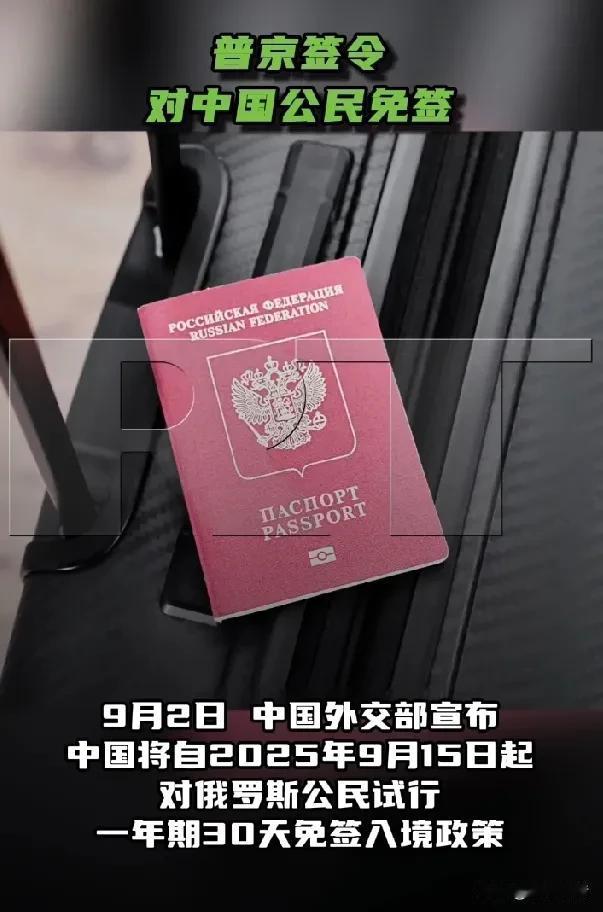 俄罗斯的30天免签入境来了! 据人民日报、今日俄罗斯等媒体报道,12月1日,俄罗斯总统普京签署了对中国公民免签入境俄罗斯的总统令。 根据互惠原则,中国公民可在2026年9月14日前免签进入俄罗斯,单次停留时长不超过30天,可进行访问、商务或旅游等活动。 今年9月2日,中国外交部宣布,中国将自2025年9月15日起对俄罗斯公民试行一年期30天免签入境政策,时间为2025年9月15日至2026年9月14日,期间持有普通护照的俄罗斯公民可免签入境中国,最长停留30天,可从事经商、旅游等活动。当时普京回应说:“俄罗斯无疑将对这一友好举措作出对等回应。我们也将这么做。”可是俄罗斯的工作效率的确不敢恭维,中国9月开始试行俄罗斯公民30日免签,俄罗斯过了3个月才签署对等免签文件。 中国网民对俄罗斯这一举动持欢迎态度,也有很多期待。有网民评论:“挺好 ,祖国大好河山逛完了,可以去俄罗斯感受一下异国风情。”“想试试俄罗斯美食,有什么推荐的吗?”“能出一个面向我们的旅游攻略指南视频吗?”不过,也有网民对俄罗斯的工作效率提出质疑,例如,“反正我对俄罗斯的效率,对于迎接中国的人流量保持怀疑。”