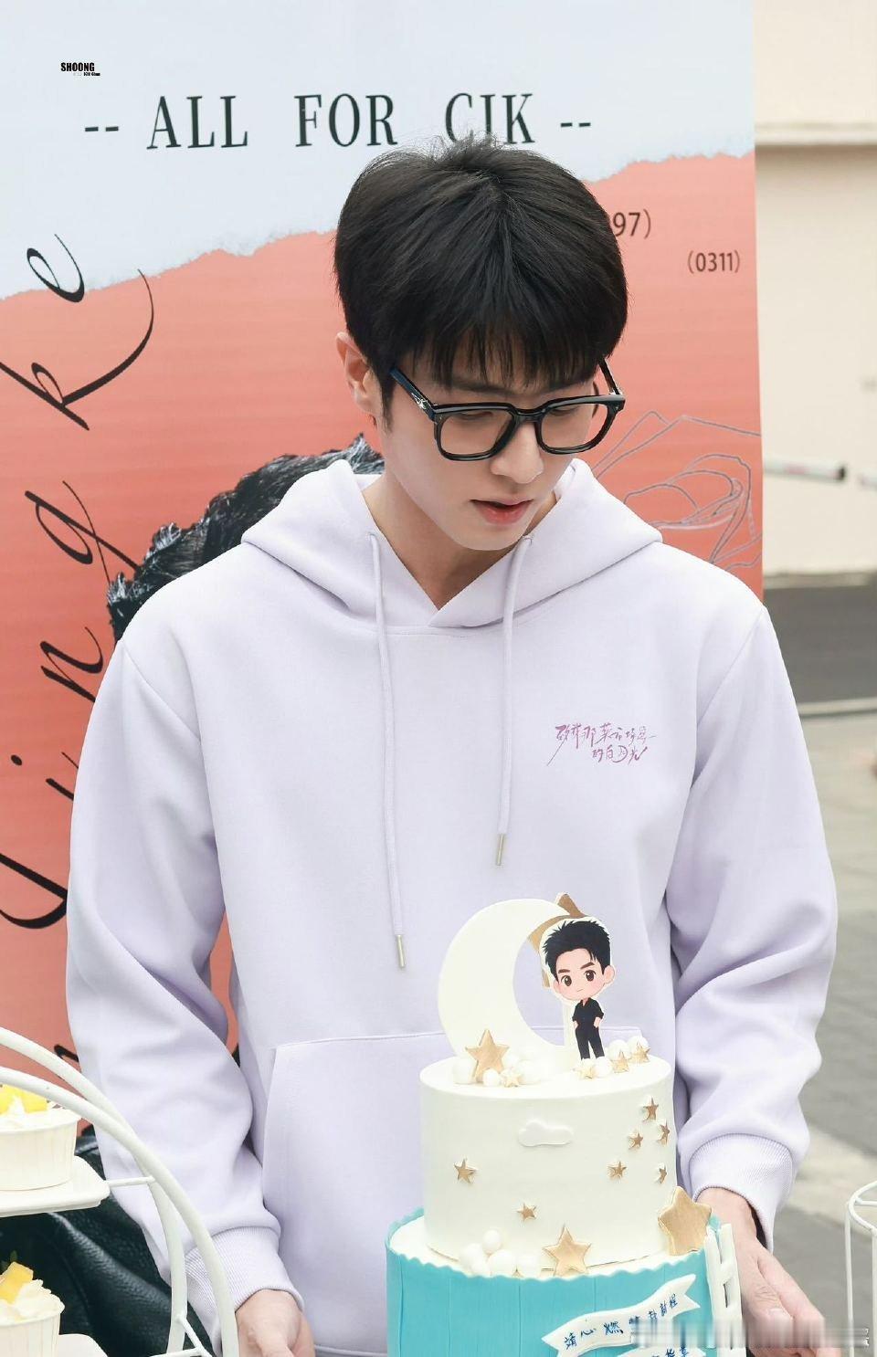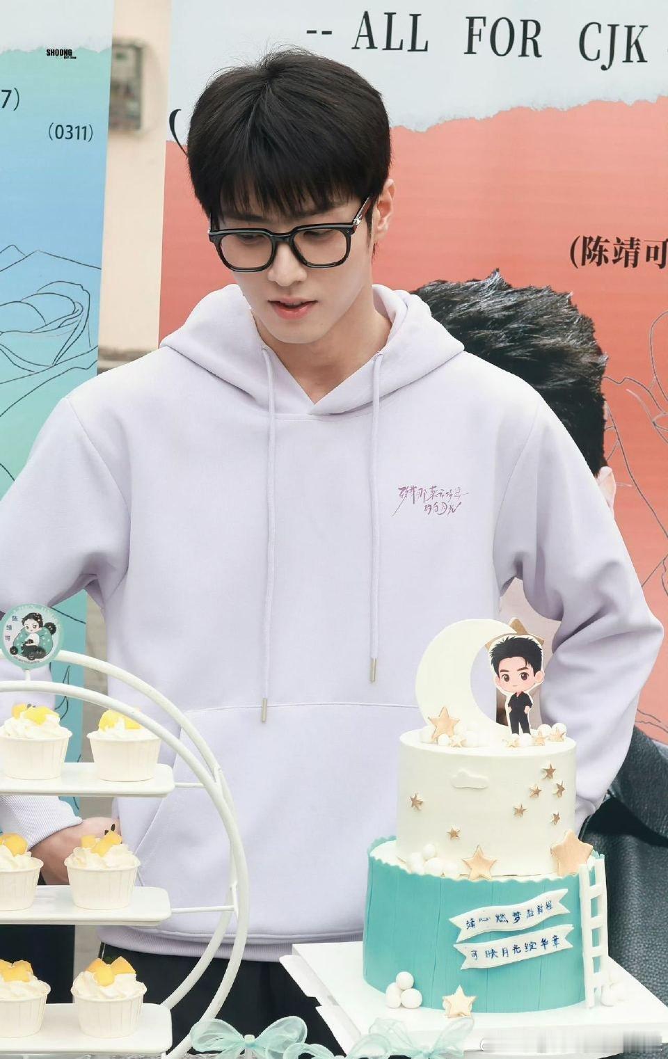 陈靖可完全是男大级别的浅紫连帽衫+黑框眼镜,清爽又聪明,妥妥校园文里的学霸男主