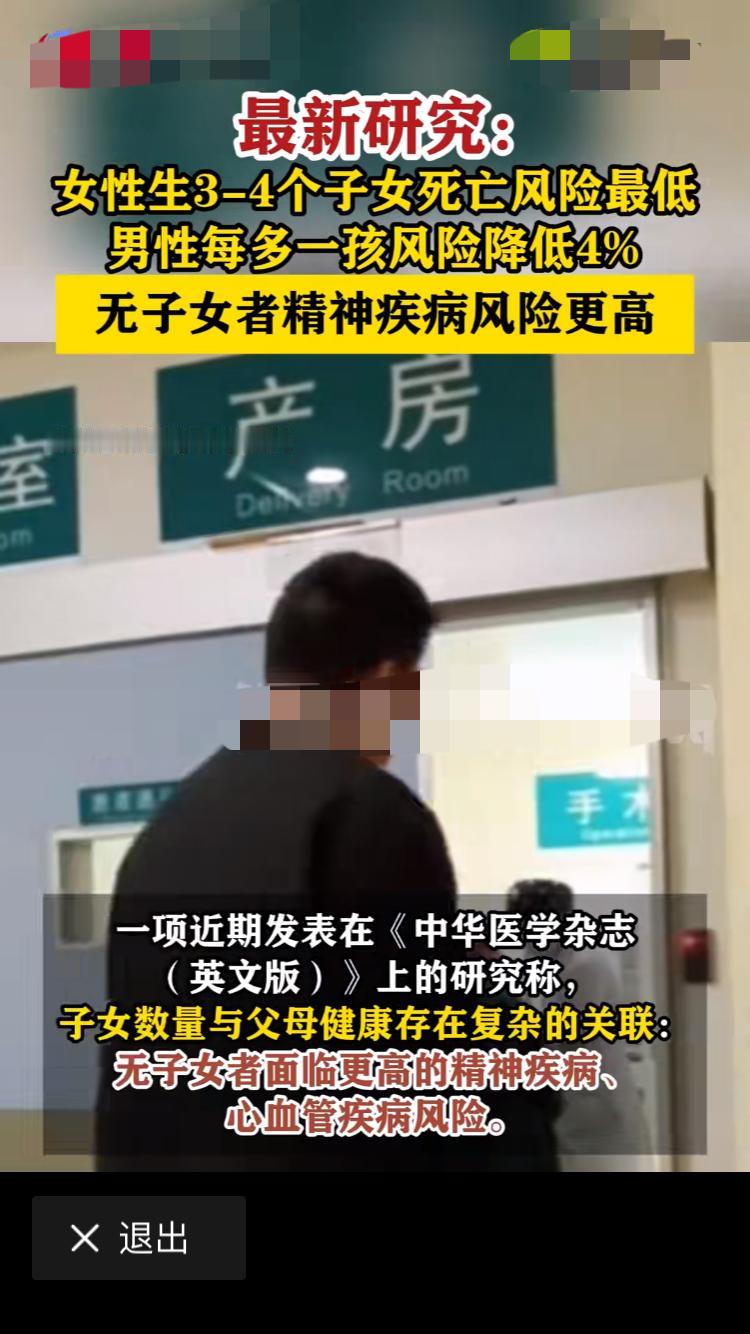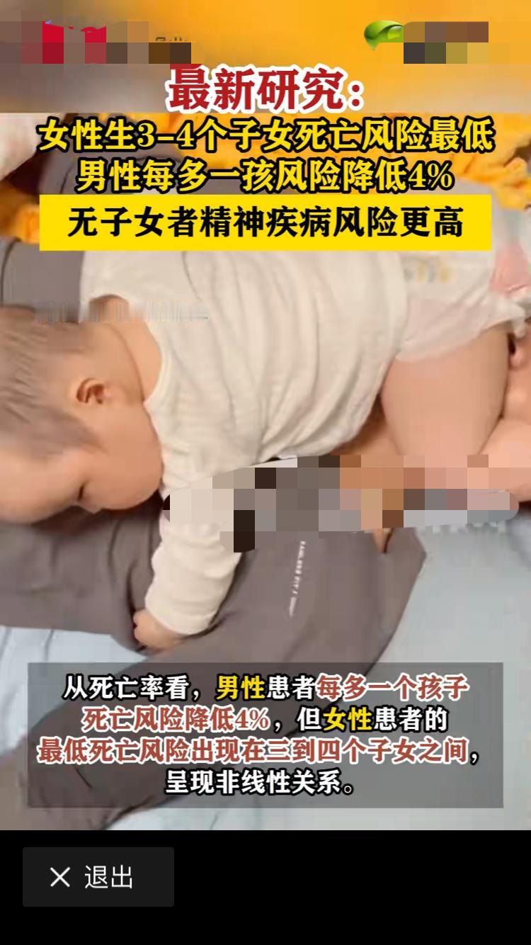 生孩子能延长寿命,发布在中华医学杂志英文版一项研究清晰的表明,无子女者容易患精神病。女性生育三到四位小孩,死亡风险最低。 男性每多一位小孩死亡风险降低4%,这是来自于生育方面专家给出的权威研究。 不生育的人群是最容易患精神病,这个大家可要记牢了!