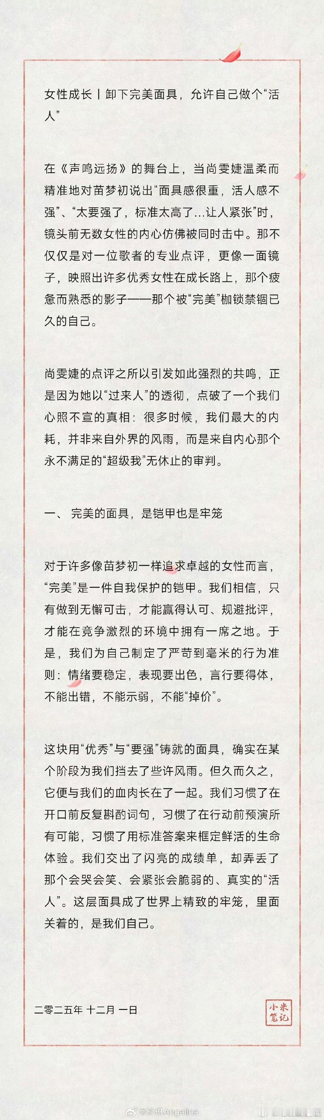 内耗人多听听尚雯婕这段话 尚雯婕说焦虑时不必逼自己“完美达标”,接纳偶尔的卡顿与不完美,反而能解锁松弛的人生状态,内耗的情绪瞬间被抚平~声鸣远扬