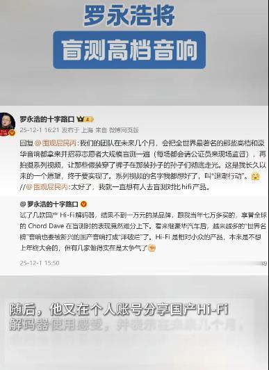罗永浩搞了个大动静他要搞一场“盲测高档音响”的活动,这事儿在发烧友圈子和普通网友里都炸开了锅。说起罗永浩,大家可能都不陌生,这位“吵架界”的现象级人物,从砸西门子冰箱到舌战王自如,再到和西贝创始人贾国龙“过招”,几乎没在公开争论中落下过下风。这次他盯上音响圈,大家自然都好奇:这葫芦里到底卖的什么药? 其实罗永浩搞盲测,可不是一时兴起。他这人,对产品品质特别较真,之前带货音响的时候,就能把蓝牙音响的外观、承重、音质、续航讲得头头是道,连食品类产品都要现场拆封吃完,再告诉你产地和用料。这种较真劲儿,在音响盲测里估计得发挥到极致。 盲测这玩意儿,说起来也不复杂。就是把几款市面上顶级的音响,比如那些动辄几万甚至十几万的“土豪款”,摆在一起,去掉所有品牌标识,让参与者闭着眼睛听,凭耳朵选出最好听的。用罗永浩的话说:“音响这玩意儿,别看广告吹得天花乱坠,最终还得耳朵收货。”这话听着挺在理,毕竟现在有些品牌靠营销炒作,音质未必对得起价格,老罗这招算是戳中了行业痛点。 不过这事儿也引来了不少争议。有人觉得罗永浩是在“碰瓷”高端音响市场,想借机炒作自己的直播带货;也有人支持他,说“终于有人敢撕开音响圈的遮羞布了”。其实罗永浩自己倒挺坦诚,他说:“我就是想让大家知道,花大价钱买的不一定是最好的,可能只是买了个牌子。”这话听着像在替消费者省钱,但仔细琢磨,背后还有更深的意思他可能想借盲测,把音响圈的“玄学”打破。比如有些品牌总爱强调“德国声”“英国声”,搞得跟酿酒似的,但声音好坏真能靠国籍区分?罗永浩的盲测,说不定能让大家更关注音响的核心参数,比如频响范围、失真度,而不是光看牌子和价格。 要说罗永浩搞盲测的底气,那可真不是盖的。他这人,向来擅长把私人纠纷升华为公共议题。比如当年砸西门子冰箱,他就把个体遭遇变成了对行业规范的拷问,最后倒逼企业建立更完善的售后服务体系。这次盲测,他估计也想用同样的套路,把音响圈的“水分”挤一挤,让消费者少花冤枉钱。 当然,盲测也不是万能的。就像葡萄酒盲测,专家们有时候也分不清哪瓶更贵、哪瓶更好喝。但罗永浩不在乎这些,他说:“盲测的结果不重要,重要的是让大家开始关注音质本身,而不是被品牌和价格忽悠。”这话听着挺实在,也让人期待这场盲测到底能掀起多大的风浪。 来源:知氪科技