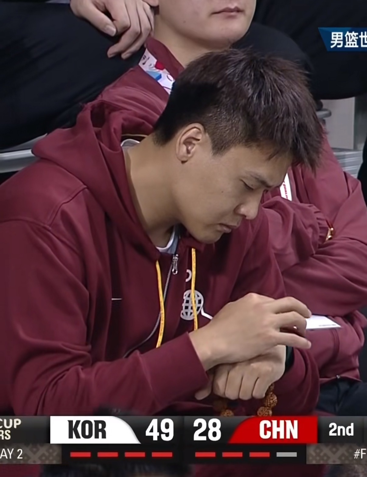 赵睿和到现场支持中国男篮的球迷赵睿场边低头不语