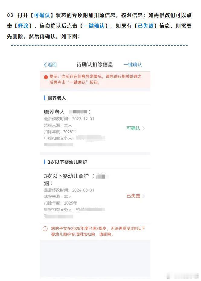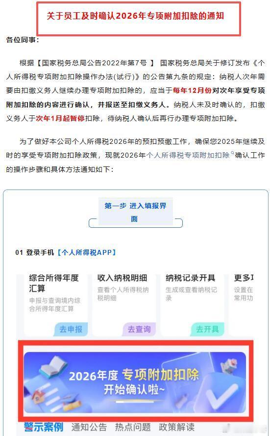 2026年个税专项附加扣除今起确认事关你的钱袋子今起确认 12月1日起,2026年度个税专项附加扣除确认正式启动,12月31日截止!这可是直接影响明年到手工资的省钱大事,千万别错过~操作超简单:打开“个人所得税”APP,首页选“专项附加扣除填报”,2025年信息无变化直接“一键带入”确认;需修改赡养老人、子女教育等信息,可在“填报记录”中修改;新增项目则选对应类别,扣除年度选“2026”按提示填报。记得避开扣除比例超100%、同时填房贷利息和租金等坑,相关资料留存5年备查。赶紧抽3分钟完成确认,稳稳拿下减税福利!2026年个税专项附加扣除今起确认