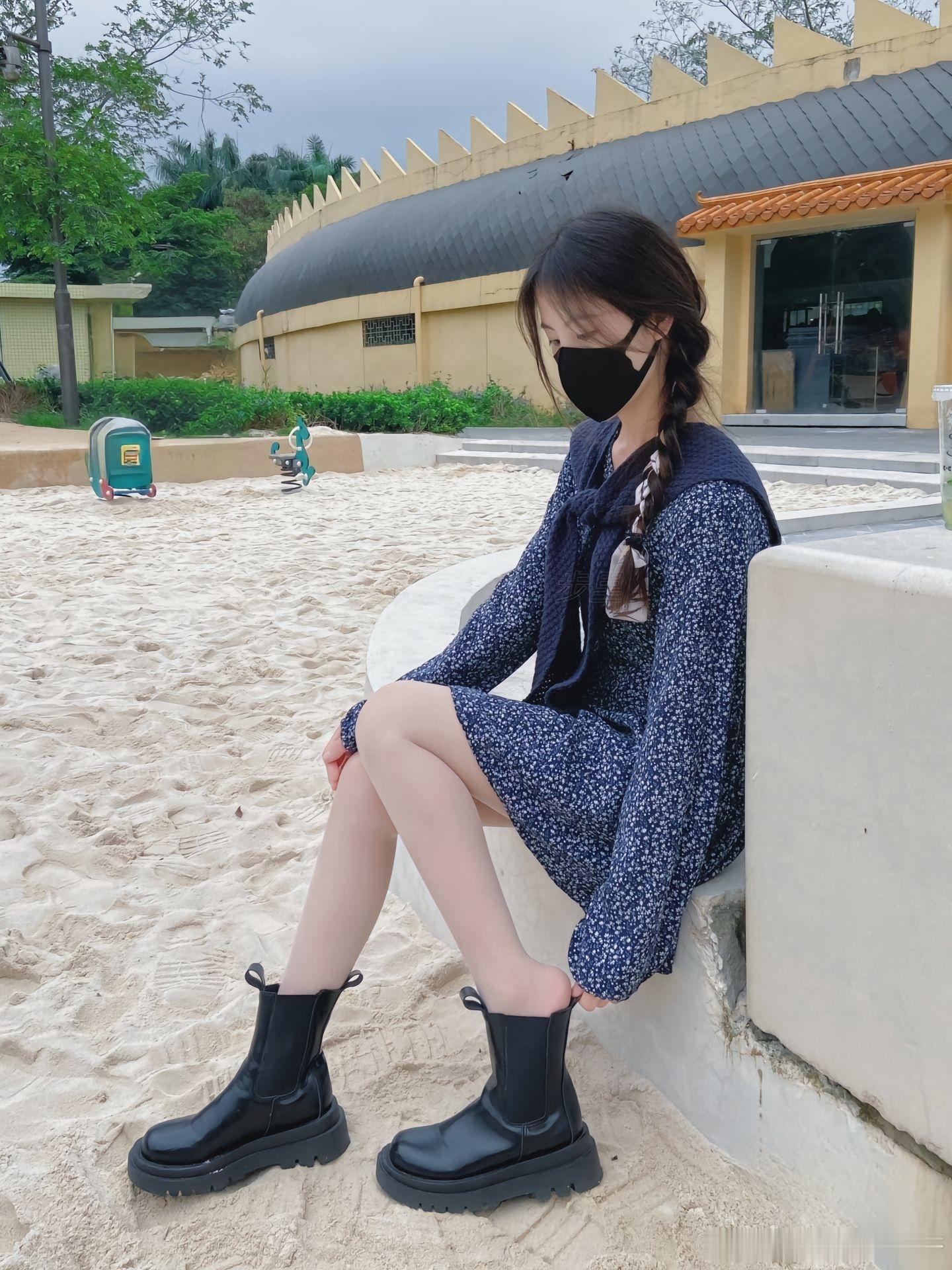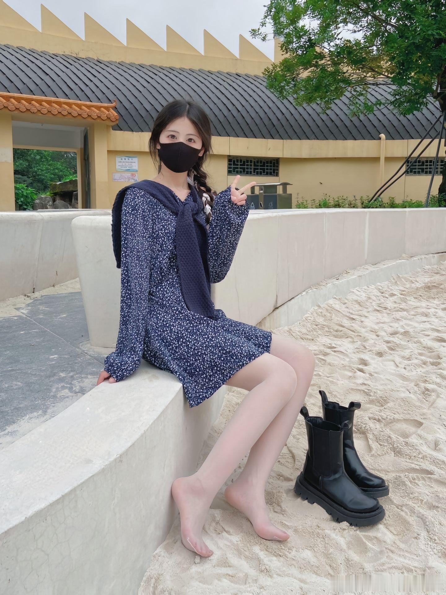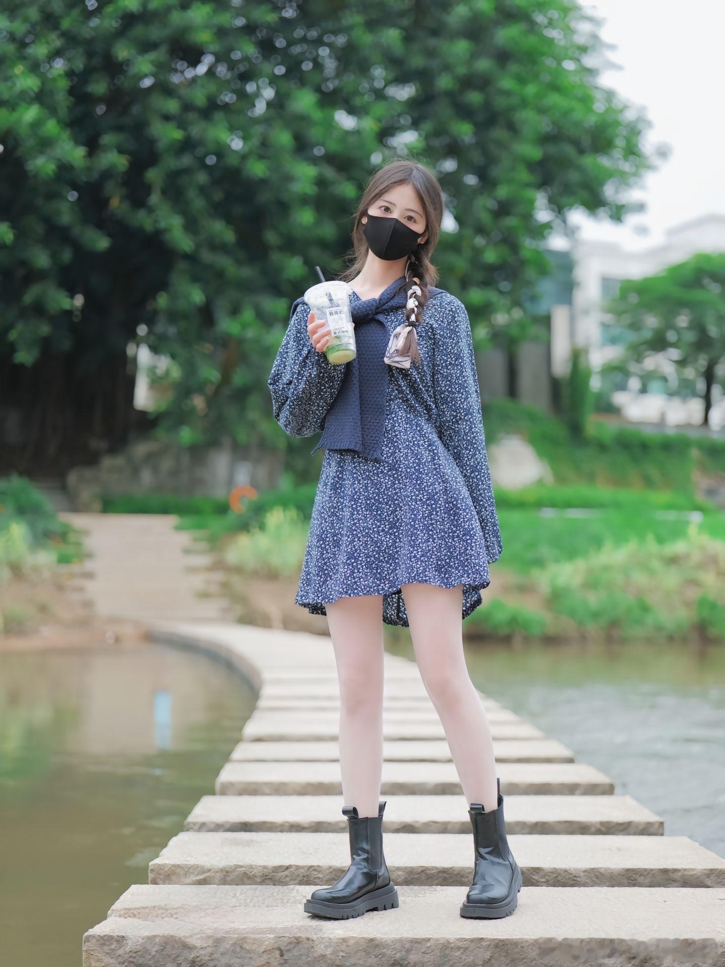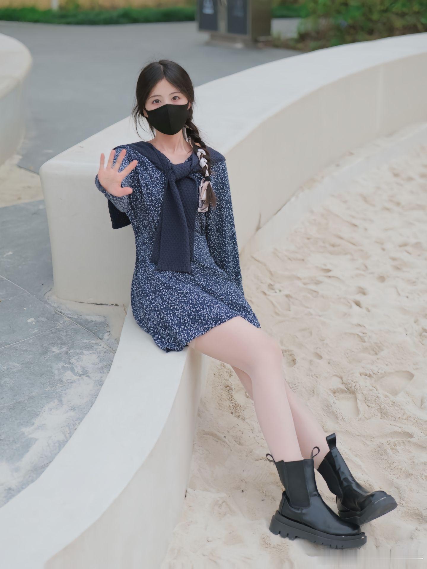 优雅阅读时光,浅蓝色连衣裙搭配高跟鞋,尽显温柔与优雅。