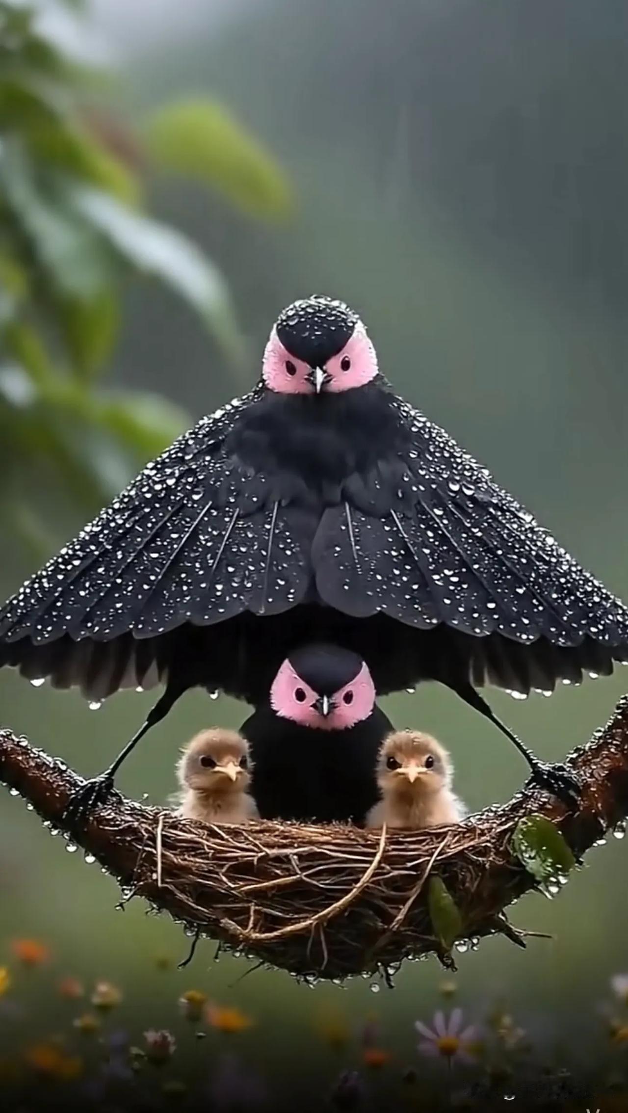这一刻,"父"字被诠释的非常形象! 下雨了,这只雄鸟用翅膀撑起来一片晴天,让自己的老婆和子女在这样的下雨天免受雨淋,其样子真的就像是"父"字一样,真的太形象了! 做为父亲,是一个家庭的顶梁柱和精神支柱,在外要拼搏打拼来养家,以此不让家里的老婆和孩子吃苦。 在家里要帮妻儿遮风挡雨,这就是父亲的形象。 每个男人都有血性,但为了妻儿老小,选择了忍气吞声,这不是懦弱的表现,是对家庭负责的成熟!