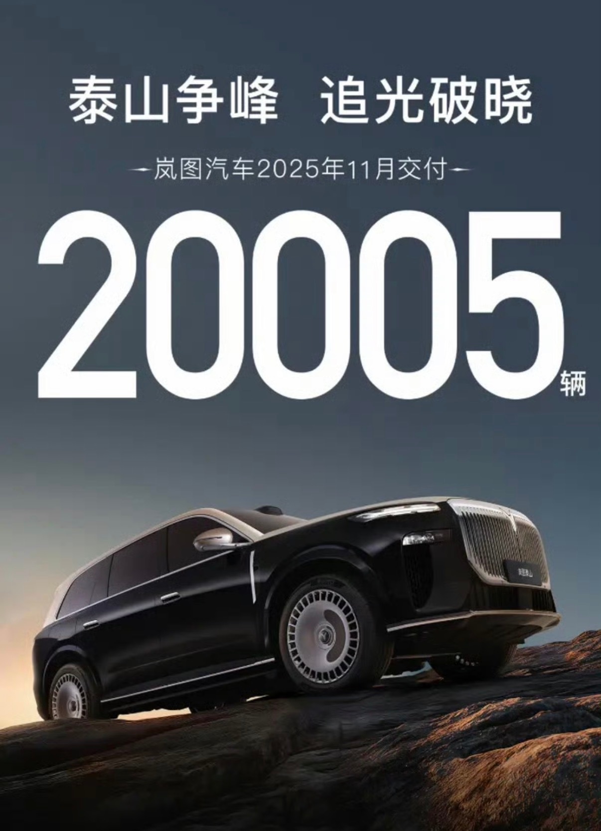 【岚图汽车2025年11月交付20005辆 追光L将于12月10日上市】12月1日,岚图汽车公布最新交付数据。2025年11月,岚图汽车共交付20005辆,再创历史。同时,官方表示岚图追光L将于12月10日迎来正式上市。新车将搭载华为乾崑智驾 ADS 4和鸿蒙座舱5.0。新车CLTC纯电续航里程高达410公里、综合续航高达1400公里。
