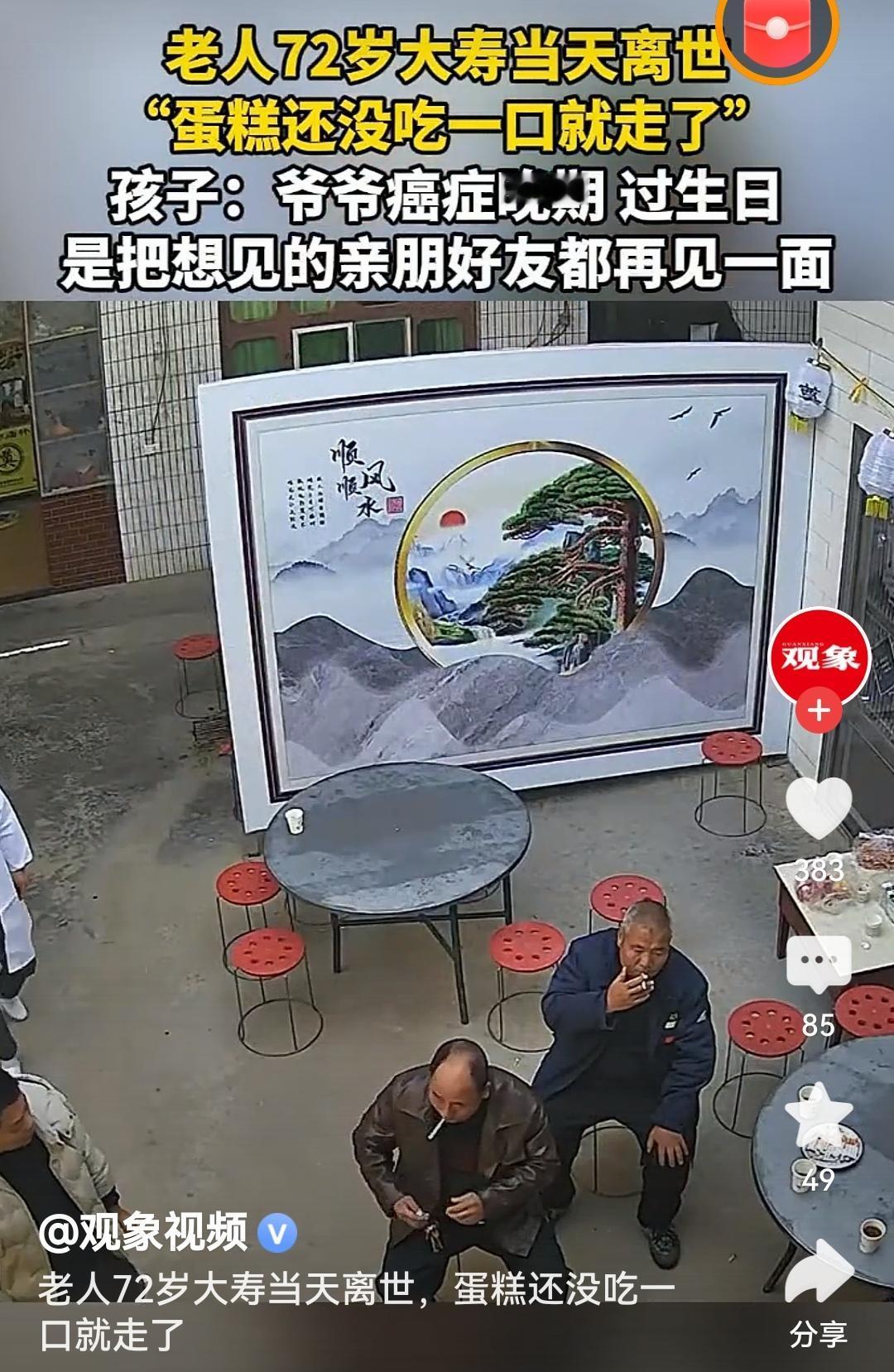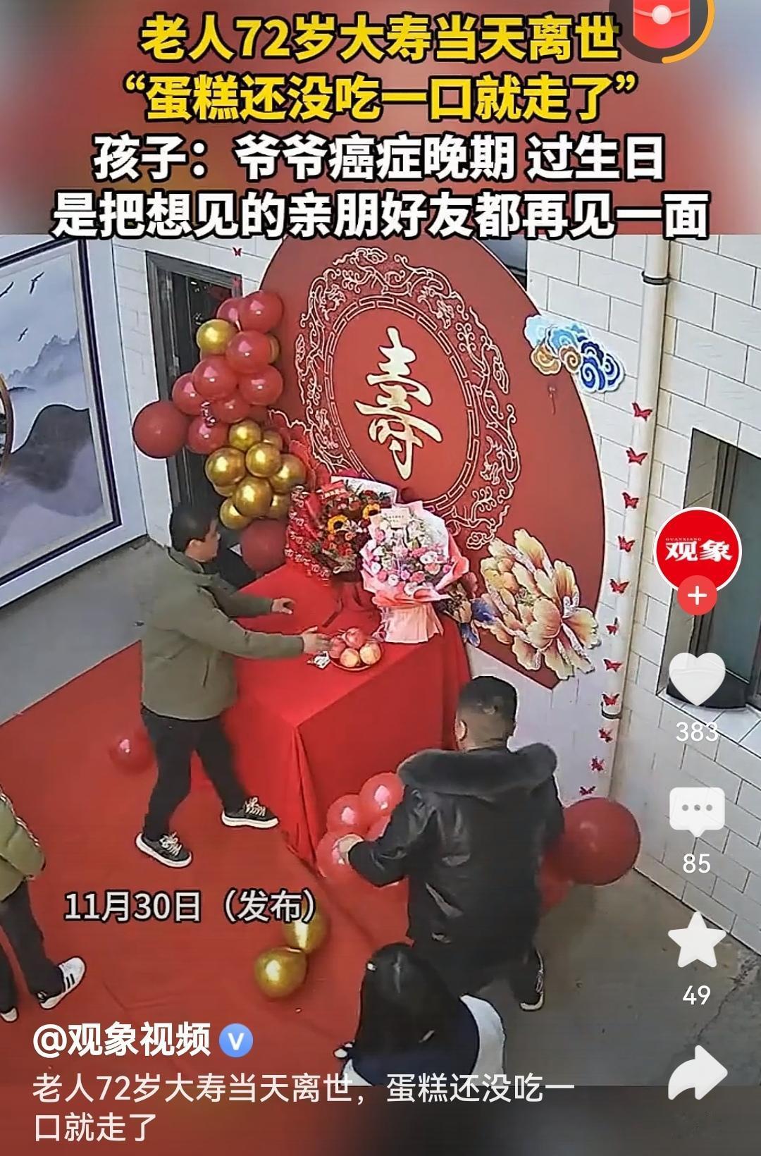 老人72岁大寿当天离世爷爷是带着所有牵挂和念想走的吧,最后一面见了最亲的人,这场寿宴是他温柔的告别。他一定是把爱都留在了这热闹里,愿爷爷在那边安稳无虞,家人也慢慢释怀呀。[祈祷][祈祷][祈祷] 高寿离世 评论打卡任务