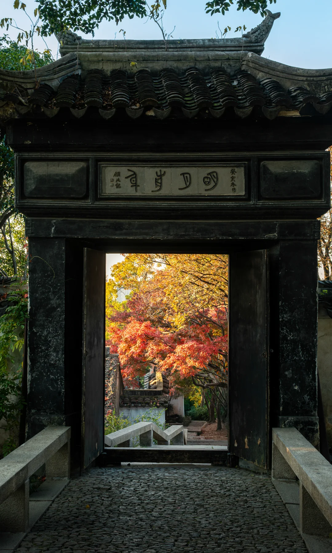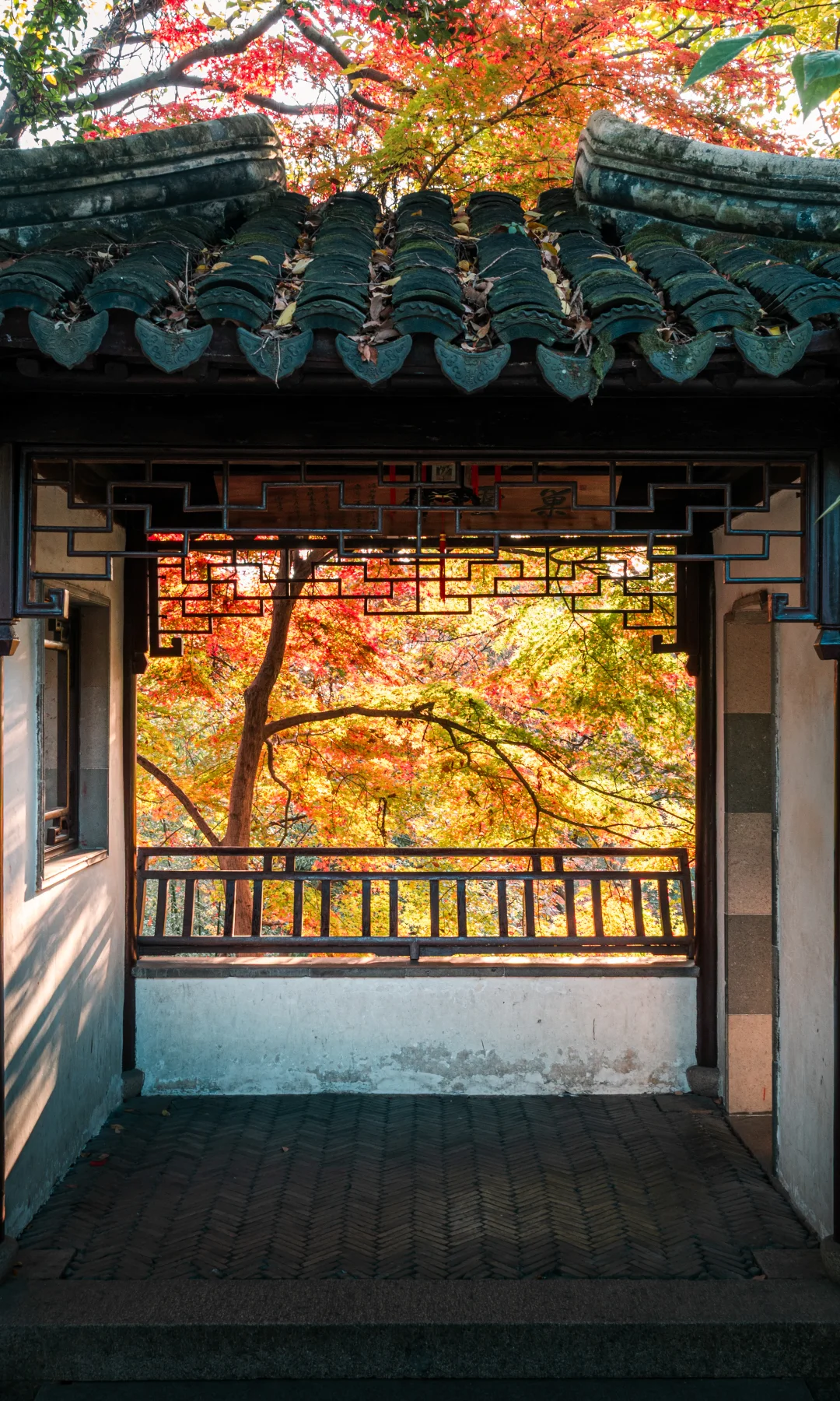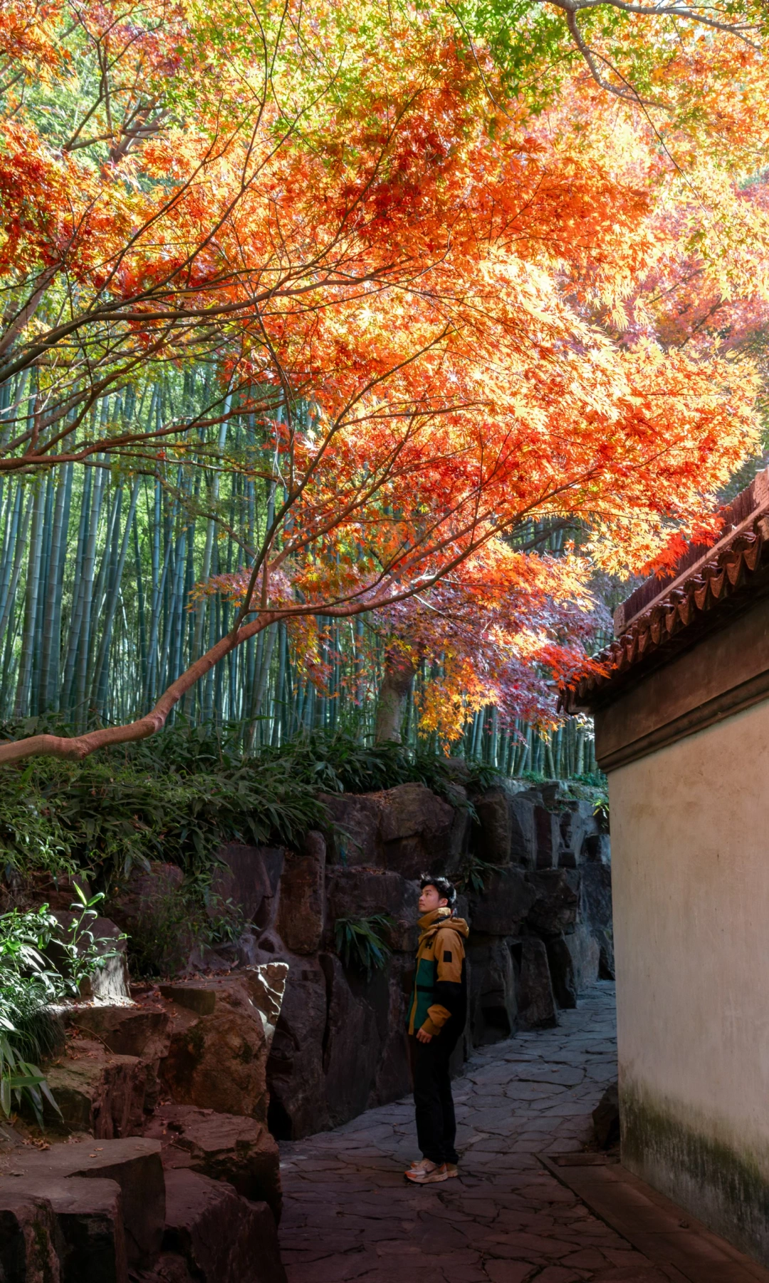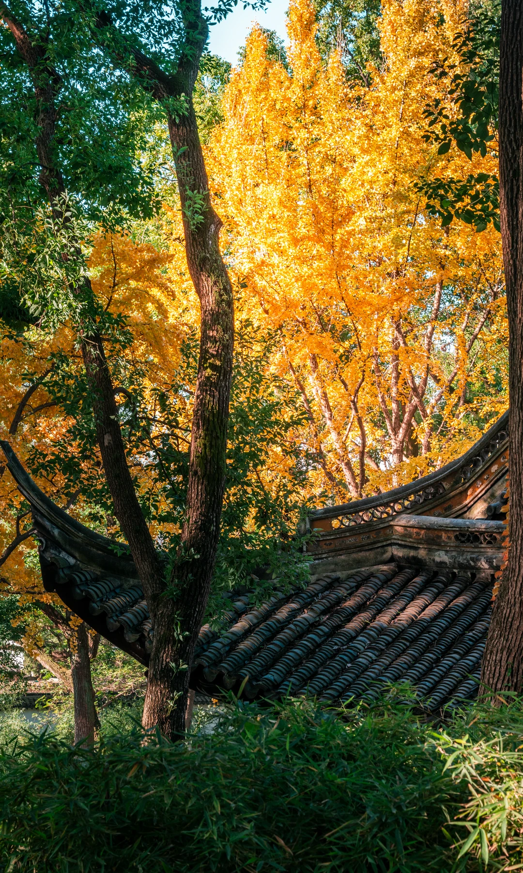 简直是苏州赏秋天花板 入口处两排高大的银杏简直是视觉盛宴 漫步在千年园林里 恍如走入古人的诗行 一步一景 一门一窗 枫叶的红 银杏的金黄互相映照 推一扇花窗、是一幅水墨 转一道回廊、是一卷秋光 银杏拂檐、枫叶摇墙、层层染染 📍在虎丘山风景区 连天地也将沉醉在这斑斓秋色之中