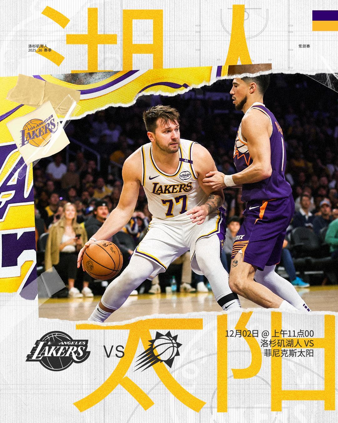 「比赛预告」⏰ 12月02日上午11点00🆚 对阵☀️ 主场背靠背✊ 让我们扛下这场硬仗太阳vs湖人 湖人国度 洛杉矶湖人