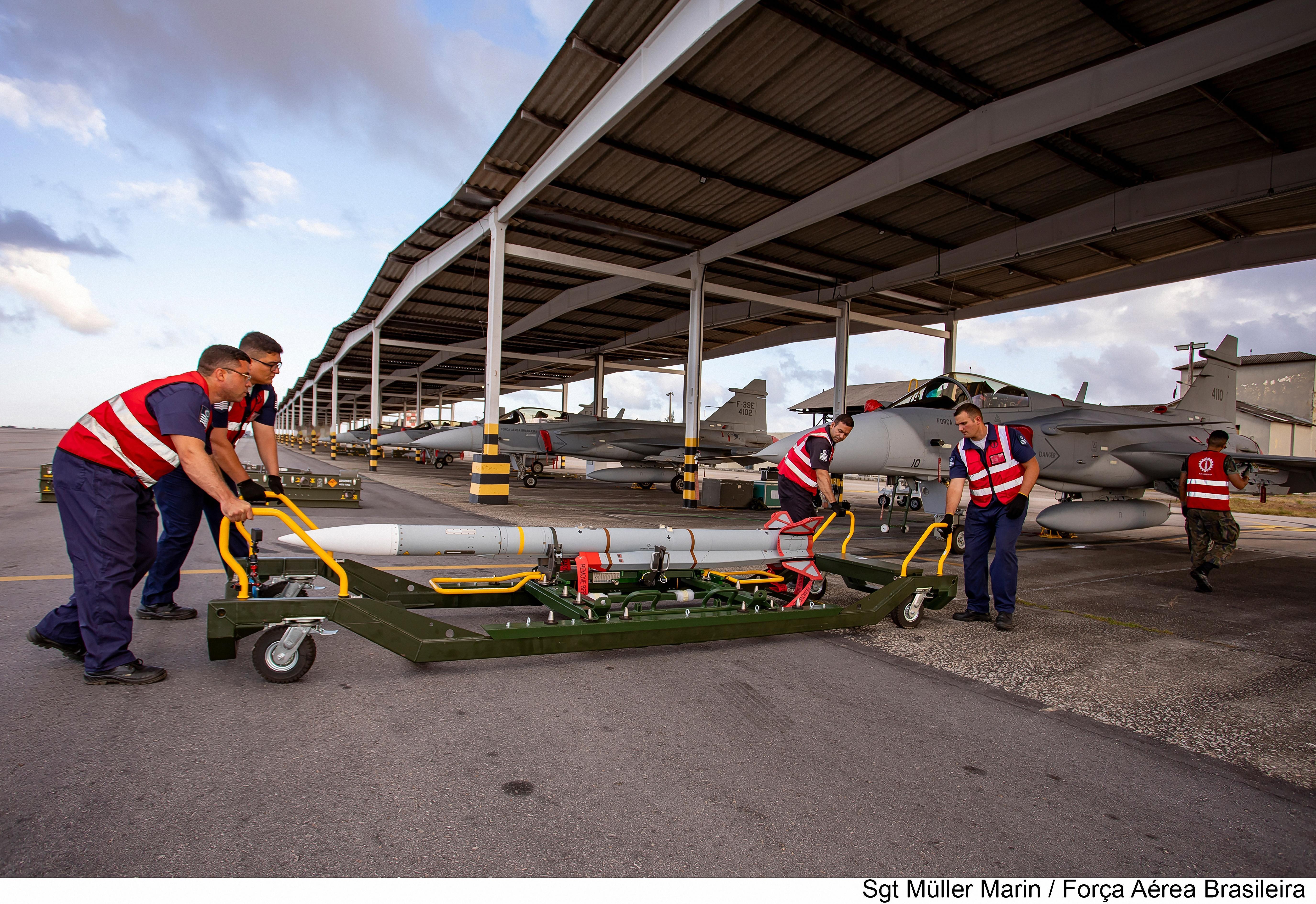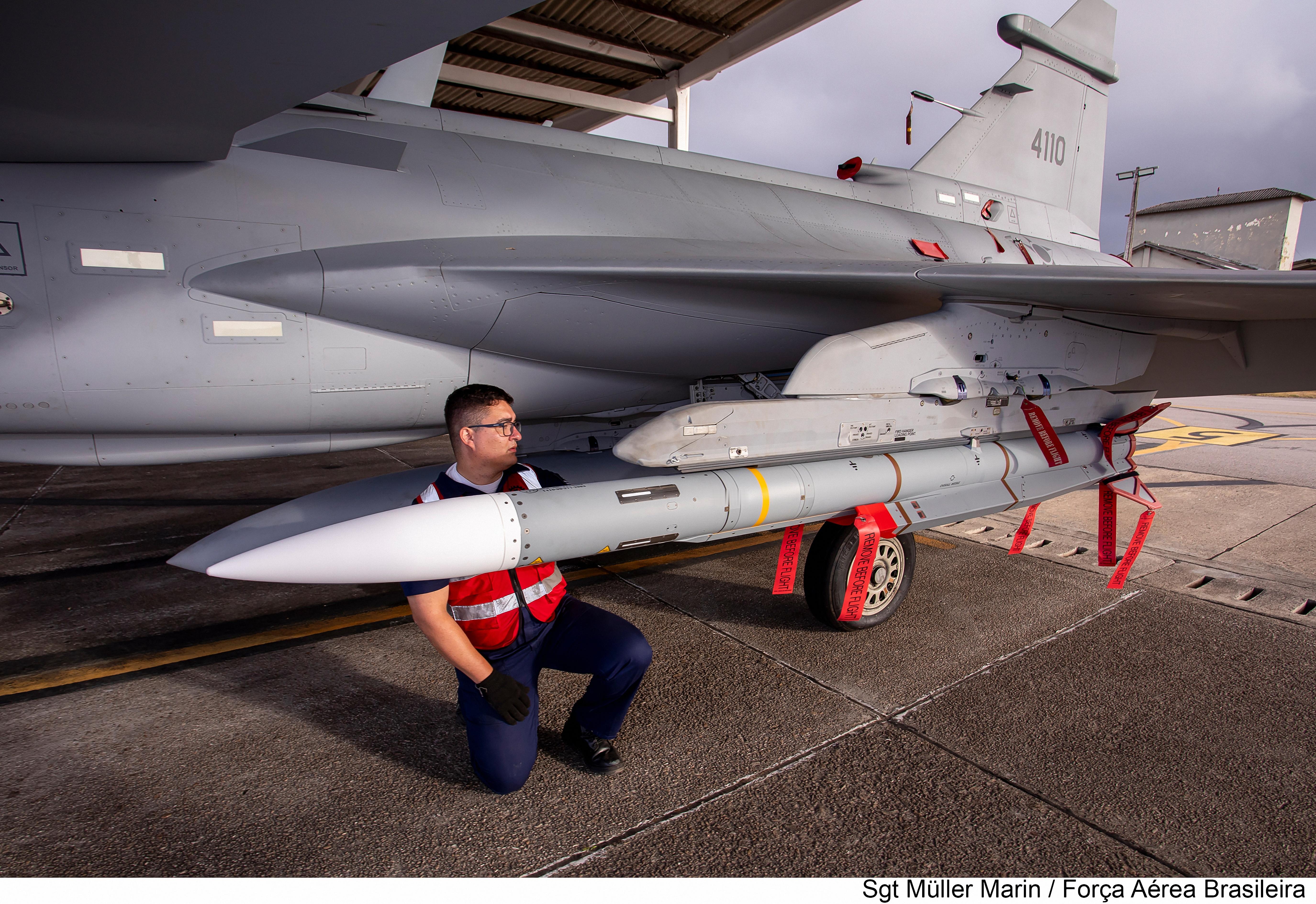 高分辨率图像 近日的巴西JAS39,挂载流星实弹(弹体表面的棕色和黄色圈代表实弹,蓝圈是训练弹),流星以远射程闻名,南美最强